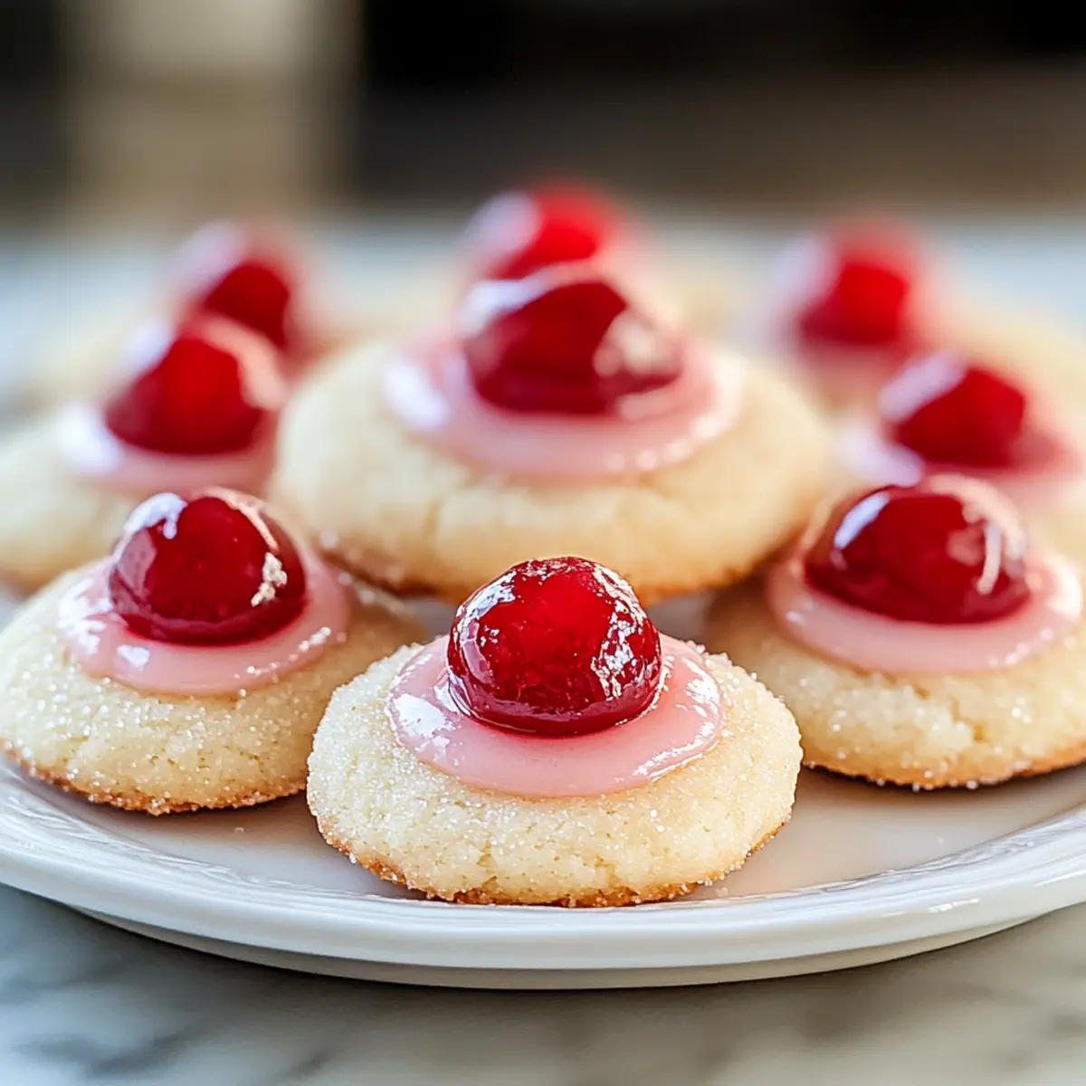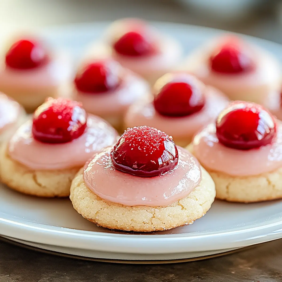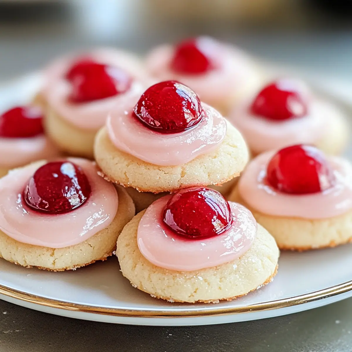Colorful Presentation: The beautiful splash of red cherries against the soft golden cookies makes them not just tasty but also visually appealing—perfect for any holiday table!
