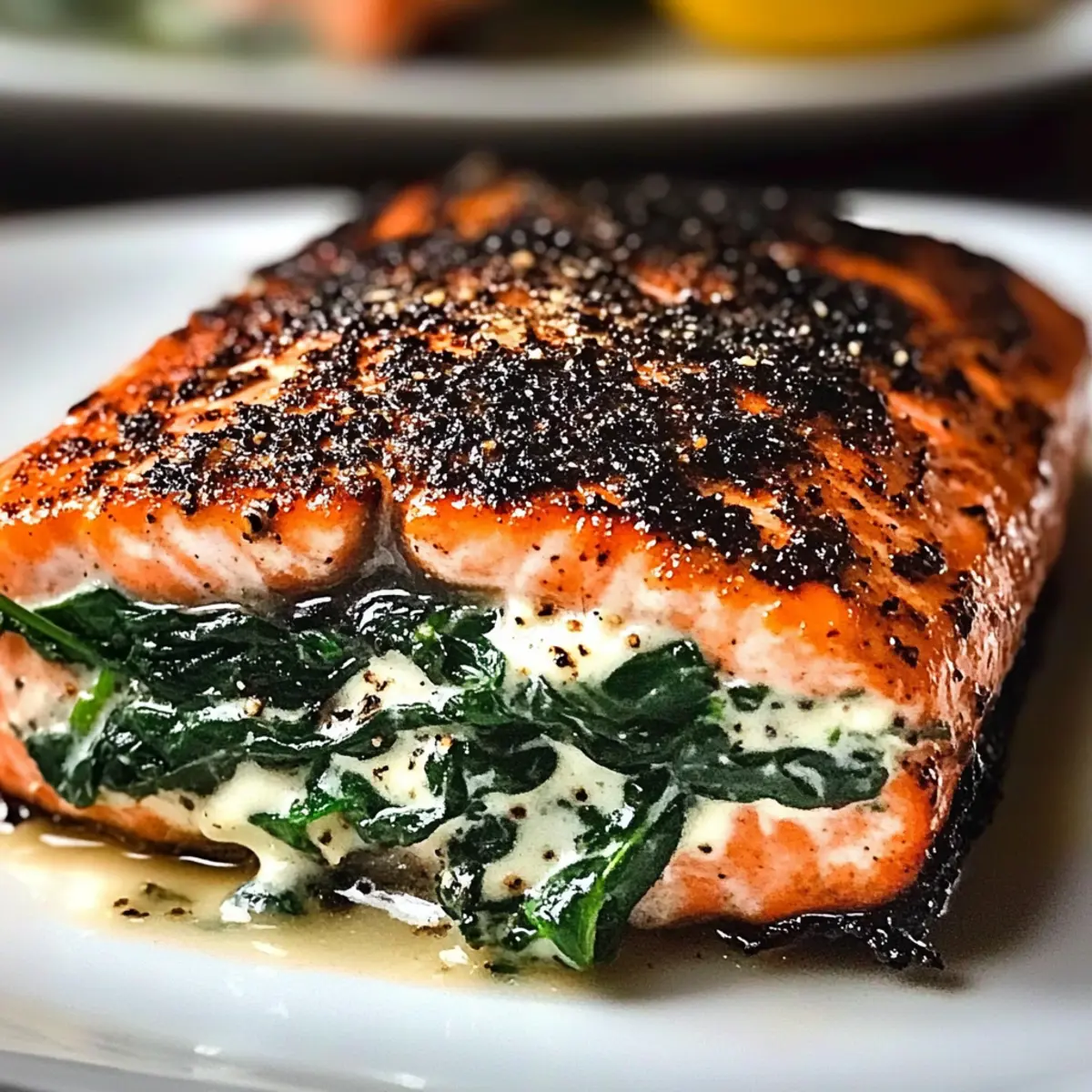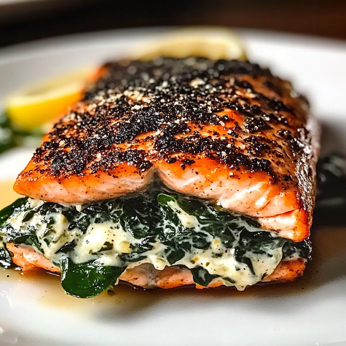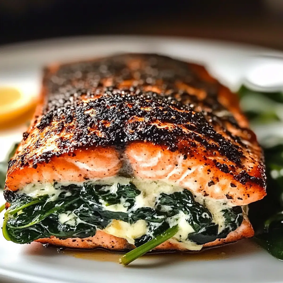 Savory Blackened Salmon Stuffed with Spinach & Parmesan Delight