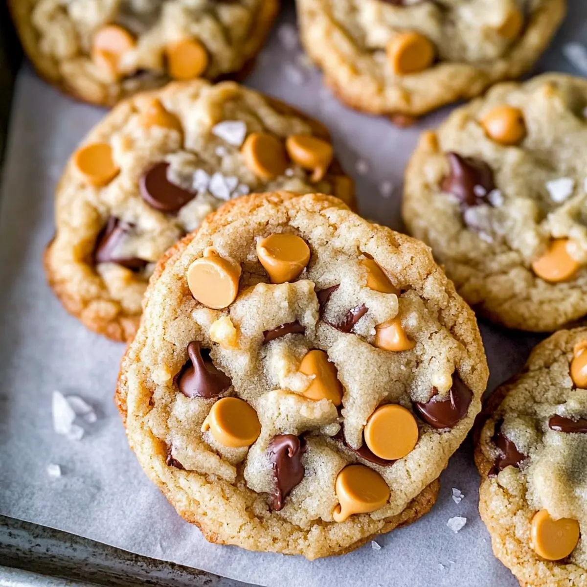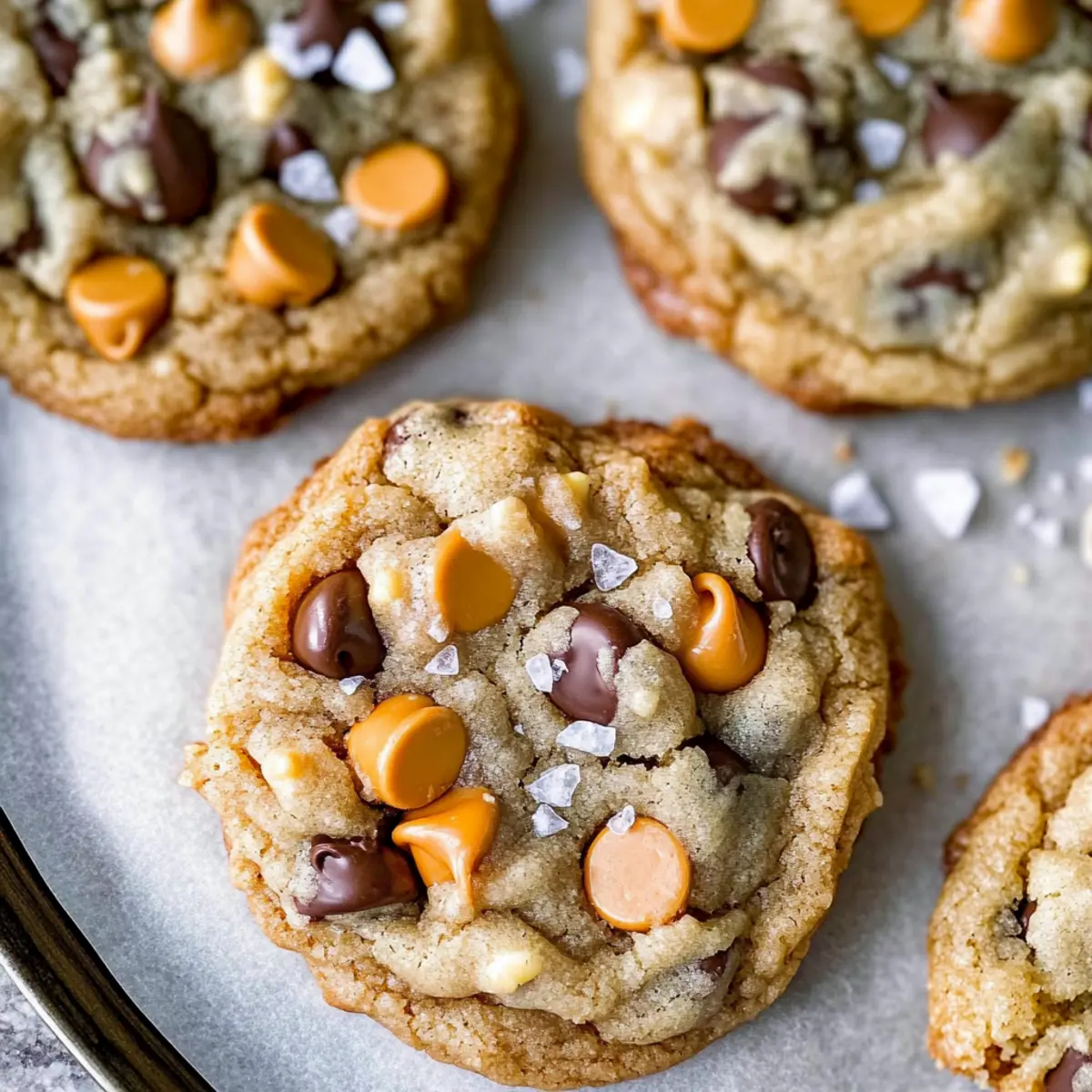 While the cookies are still warm, sprinkle a tiny pinch of sea salt over the top of each cookie. This finishing touch enhances the sweet and salty flavors beautifully, making your Butterscotch Chocolate Chip Cookies irresistibly delicious!