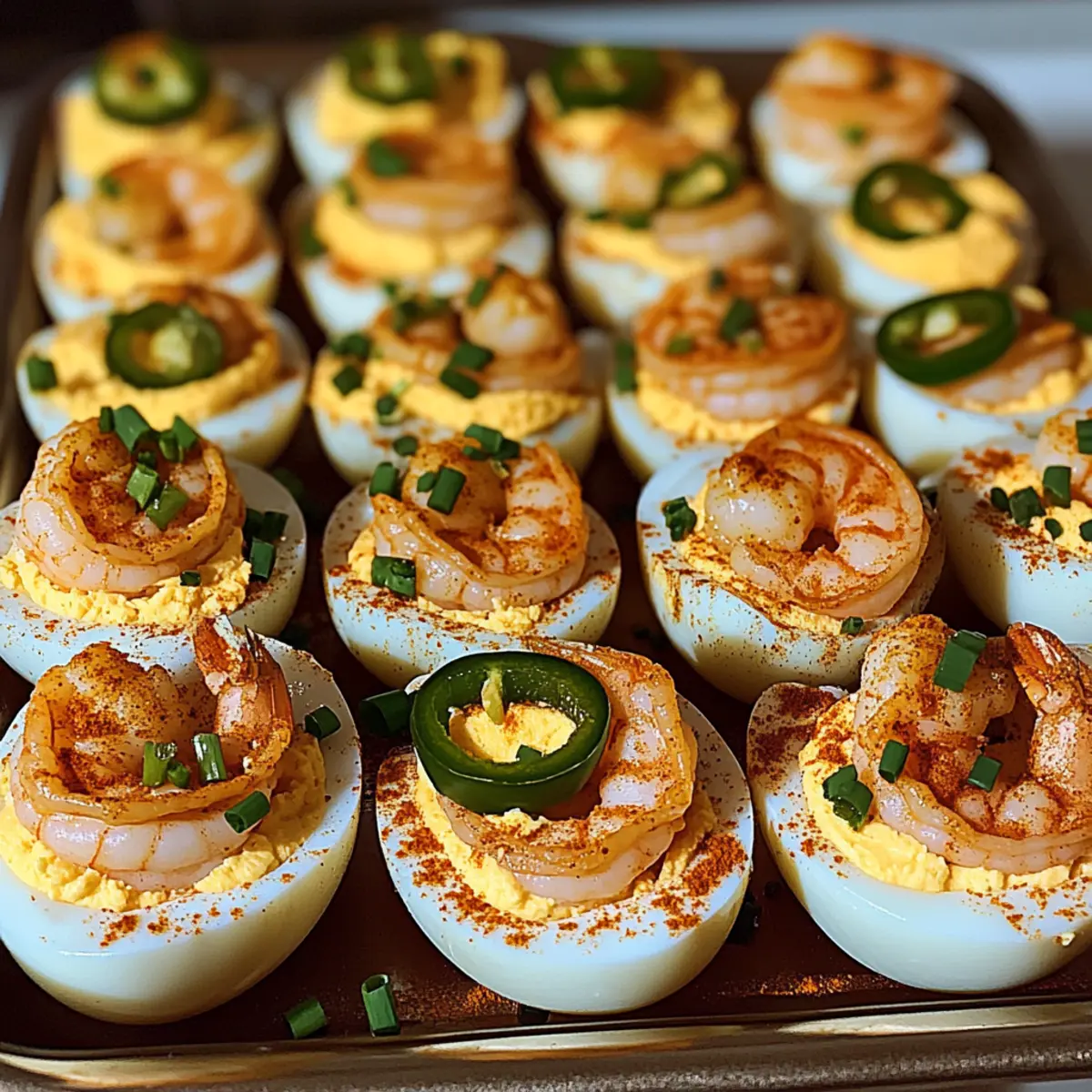 - Lemon Wedges – Perfect for serving; a squeeze of lemon enhances the overall flavor of the Cajun Shrimp Deviled Eggs.