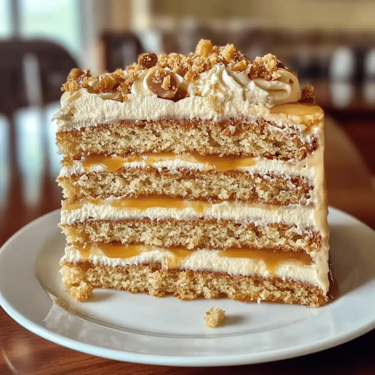 This delightful Caramel Crunch Cake is sure to be a crowd-pleaser at your next gathering!