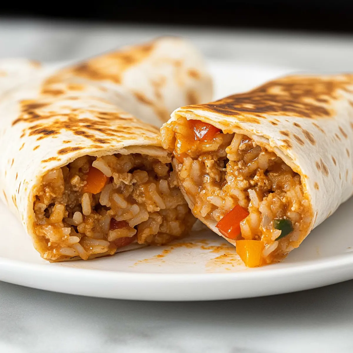 These Cheesy Ground Chicken and Rice Burritos are perfect for meal prep enthusiasts! You can prepare the filling up to 3 days in advance. Simply cook the ground chicken and vegetables as instructed, allow them to cool completely, and then store the mixture in an airtight container in the refrigerator. The burritos can also be assembled and wrapped tightly for up to 24 hours before toasting—just be sure to let the filling cool to prevent sogginess. When you’re ready to serve, toast them directly from the fridge or, if frozen, reheat them in a skillet for crispy perfection. Enjoy restaurant-quality results with minimal effort on busy weeknights!