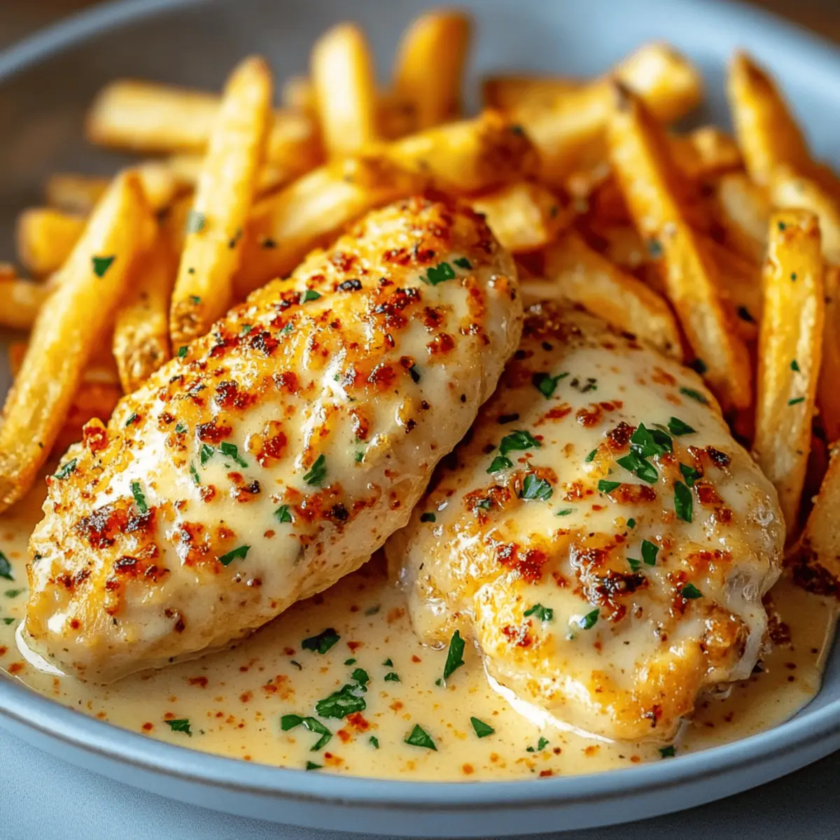 In the heart of my kitchen, a magical transformation takes place whenever I whip up Creamy Garlic-Parmesan Chicken Fillet in Spicy, Creamy Garlic-Parmesan Sauce with Crispy Fries. The aroma of sizzling garlic fills the air, instantly transporting me back to cozy evenings spent enjoying indulgent meals. This dish effortlessly combines two irresistible perks: it’s a quick prep delight for busy nights and a comforting crowd-pleaser that guarantees satisfied smiles around the dinner table. With each tender bite of chicken enveloped in a velvety, spicy sauce partnered with crunchy fries, you’ll discover the perfect way to turn your day around. Ready to dive into this deliciously gratifying recipe? Let’s get cooking!