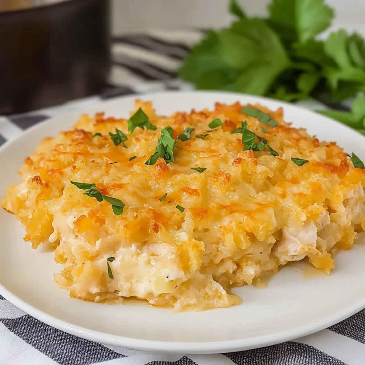 As I stood in the kitchen, the aroma of melting cheese and savory chicken filled the air, instantly transporting me back to family gatherings around the dinner table. This Chicken Hashbrown Casserole is one of those delightful dishes that offer the ultimate comfort food experience, effortlessly blending crispy hashbrowns with tender chicken and a creamy, cheesy base. What I love most about this easy-to-make casserole is not just its warm, inviting flavors, but also how it caters to busy weeknights, providing a satisfying meal that the whole family can enjoy. Perfectly versatile, it can be whipped up with simple pantry staples or dressed with fresh herbs to elevate its appeal. Ready to bring a taste of home to your dining table? Let me share how to create this family favorite that promises to become a cherished go-to recipe in your kitchen!