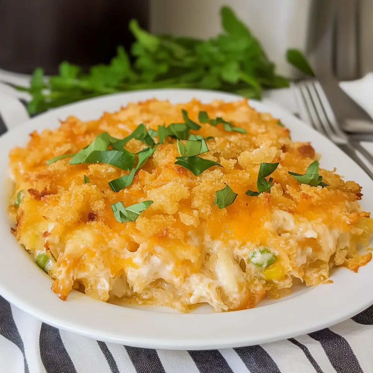 Fresh Herbs: Garnish with fresh herbs like parsley, chives, or dill before serving to brighten the dish. They not only add visual appeal but also a burst of flavor that enhances the heartiness of the casserole.