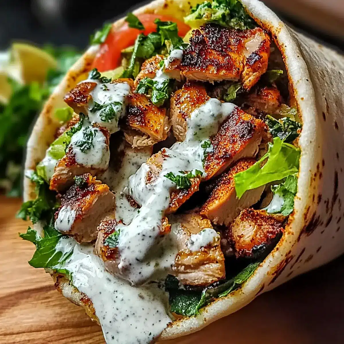 - Warm pita bread, spread garlic sauce over it, add chicken slices, and top with fresh herbs or vegetables. Drizzle additional garlic sauce on top, ready to wrap and enjoy!