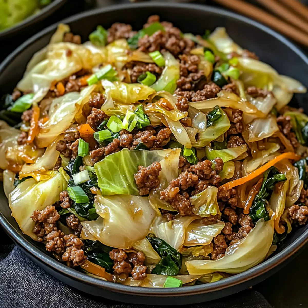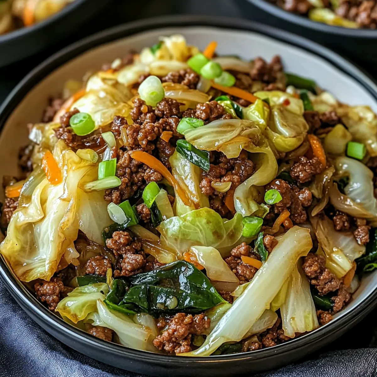 Quick preparation: In just 25 minutes, you can serve a dish that tastes like it came from your favorite restaurant. Savory satisfaction comes from juicy ground beef paired with crisp cabbage, creating a delightful and hearty meal. Versatility is key as you can easily swap in your favorite veggies or proteins, making it adaptable for any palate. Plus, it’s economical, featuring ingredients that are budget-friendly and accessible. If you’re searching for more exciting weeknight dinners, check out my delicious Garlic Butter Beef recipe or the zesty Honey Sriracha Ground dish for variety!