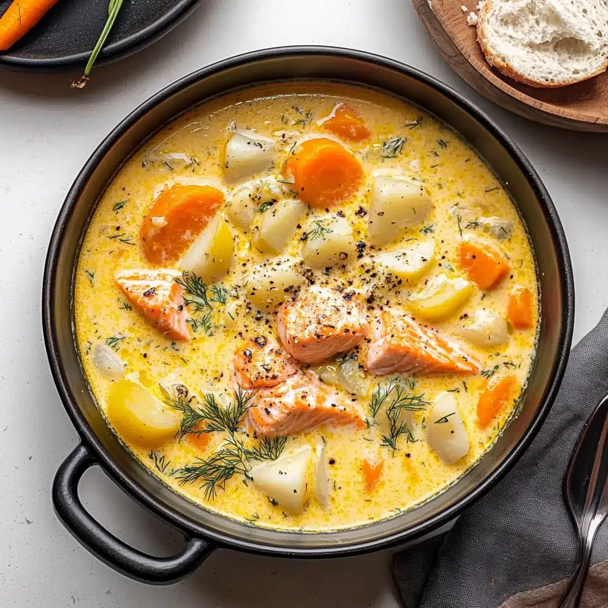 Embrace the flavors of this Creamy Finnish Salmon Soup with these fresh and wholesome ingredients, inviting comfort right into your kitchen!
