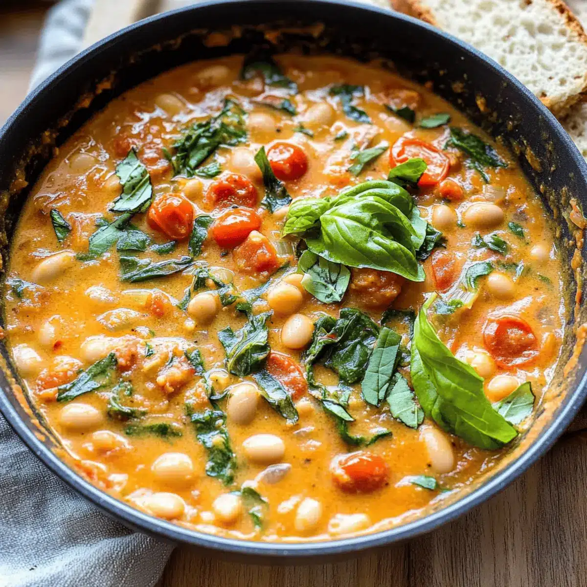 Season the stew with salt and pepper to taste, adjusting based on your broth’s salt levels. Ladle the hot Creamy Tomato White Bean Stew into bowls, garnishing with fresh basil leaves and a drizzle of olive oil if desired. The visual appeal and savory scent will surely entice everyone at the table!