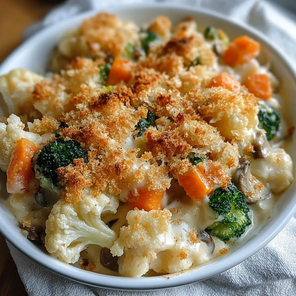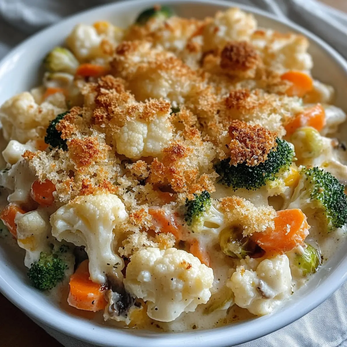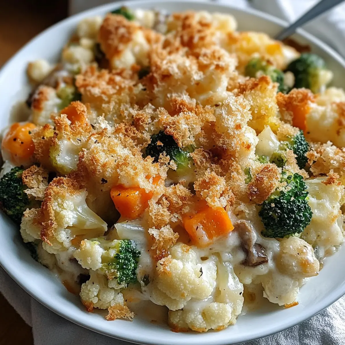 These Creamy Winter Vegetable Casserole options make meal planning a breeze! You can prepare the filling up to 24 hours in advance by mixing your vegetables with the cream of mushroom soup, milk, and seasonings. Simply mix everything together and refrigerate the mixture. To maintain quality, keep the breadcrumb topping separate until ready to bake, as this will ensure it remains crispy. When it’s time to serve, pour the filling into your greased baking dish, sprinkle the buttery breadcrumbs on top, and bake right from the refrigerator for 25-30 minutes until golden brown. This preparation method not only saves you time but guarantees a deliciously comforting meal with minimal effort!