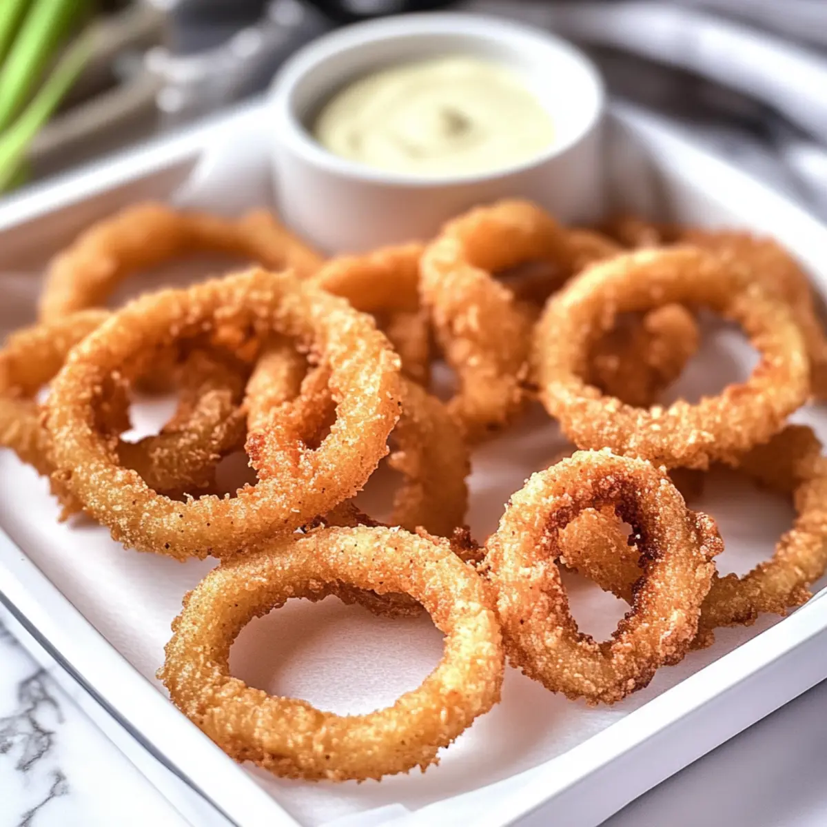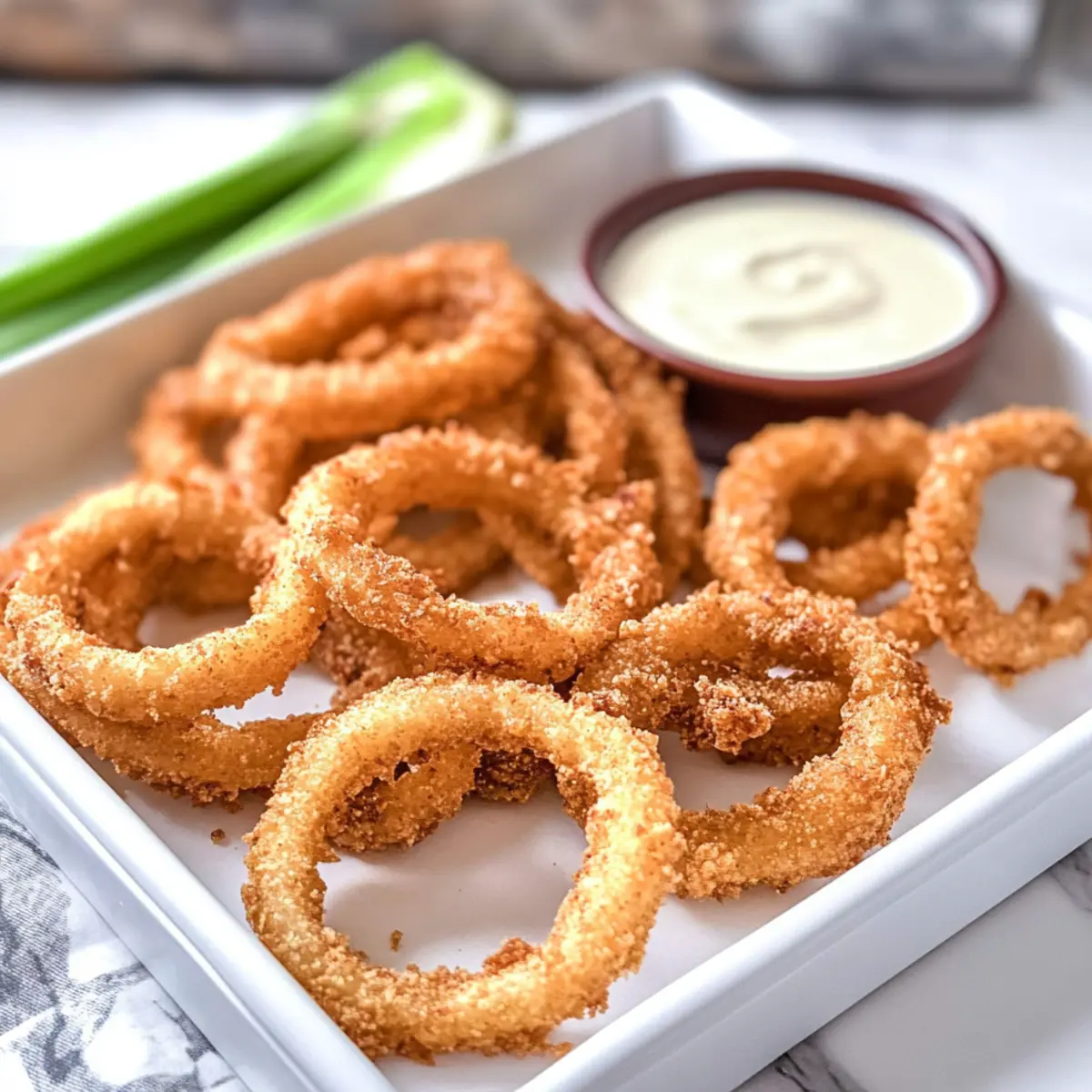 Creamy Ranch Dip: A classic choice that’s cool and rich, providing a delicious contrast to the crunchy onion rings.