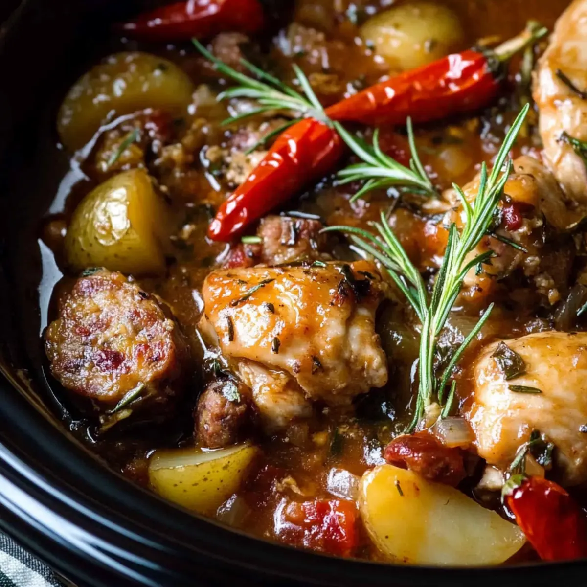 As I walked into my kitchen the other day, the inviting aroma of sautéed sausage and garlic hit me like a warm hug. That’s when I decided it was the perfect time to whip up a comforting meal that brings everyone together: Crock Pot Chicken Scarpariello. This hearty dish marries tender chicken thighs with savory sweet Italian sausage and zesty peppadew peppers, resulting in a flavor-packed adventure in every bite. Not only is this recipe ideal for busy weeknights—ready in a mere 5 hours—but it also allows the slow cooker to transform ordinary ingredients into an extraordinary homemade feast. Ready to discover how to create a dinner that’ll leave your loved ones asking for seconds? Let’s dive in!