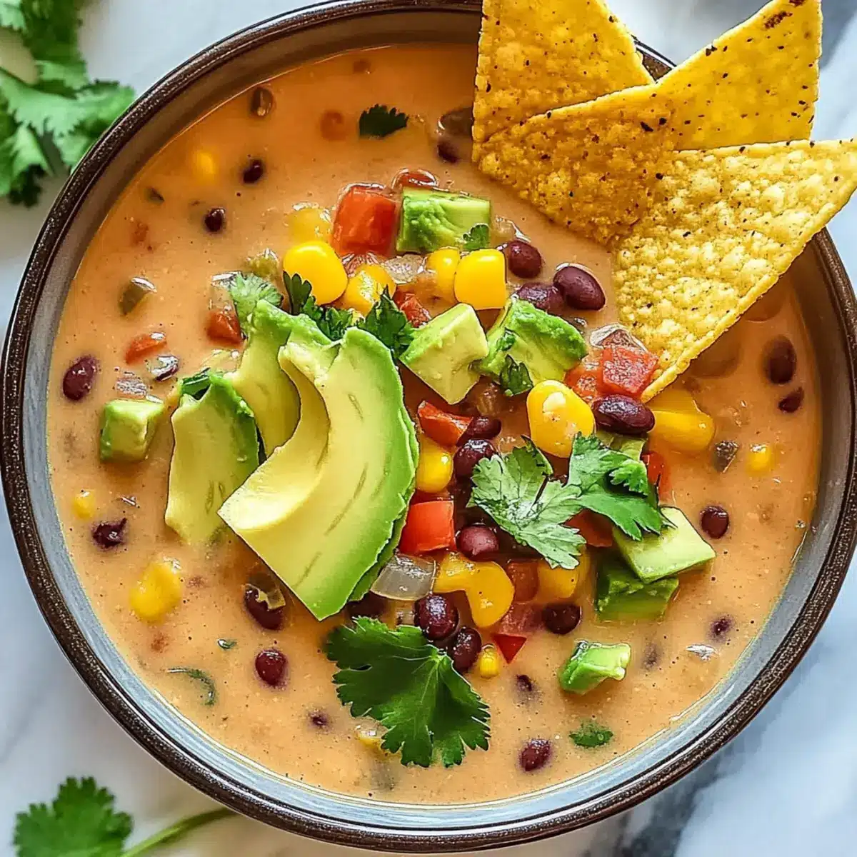 Ladle the rich soup into bowls, taking care to capture the vibrant colors and textures. Garnish each serving with optional toppings like crushed tortilla chips, sliced avocado, or fresh cilantro for added flavor and crunch. Your homemade Crockpot Vegetarian Tortilla Soup is now ready to be savored, perfect for any cozy gathering or weeknight dinner.