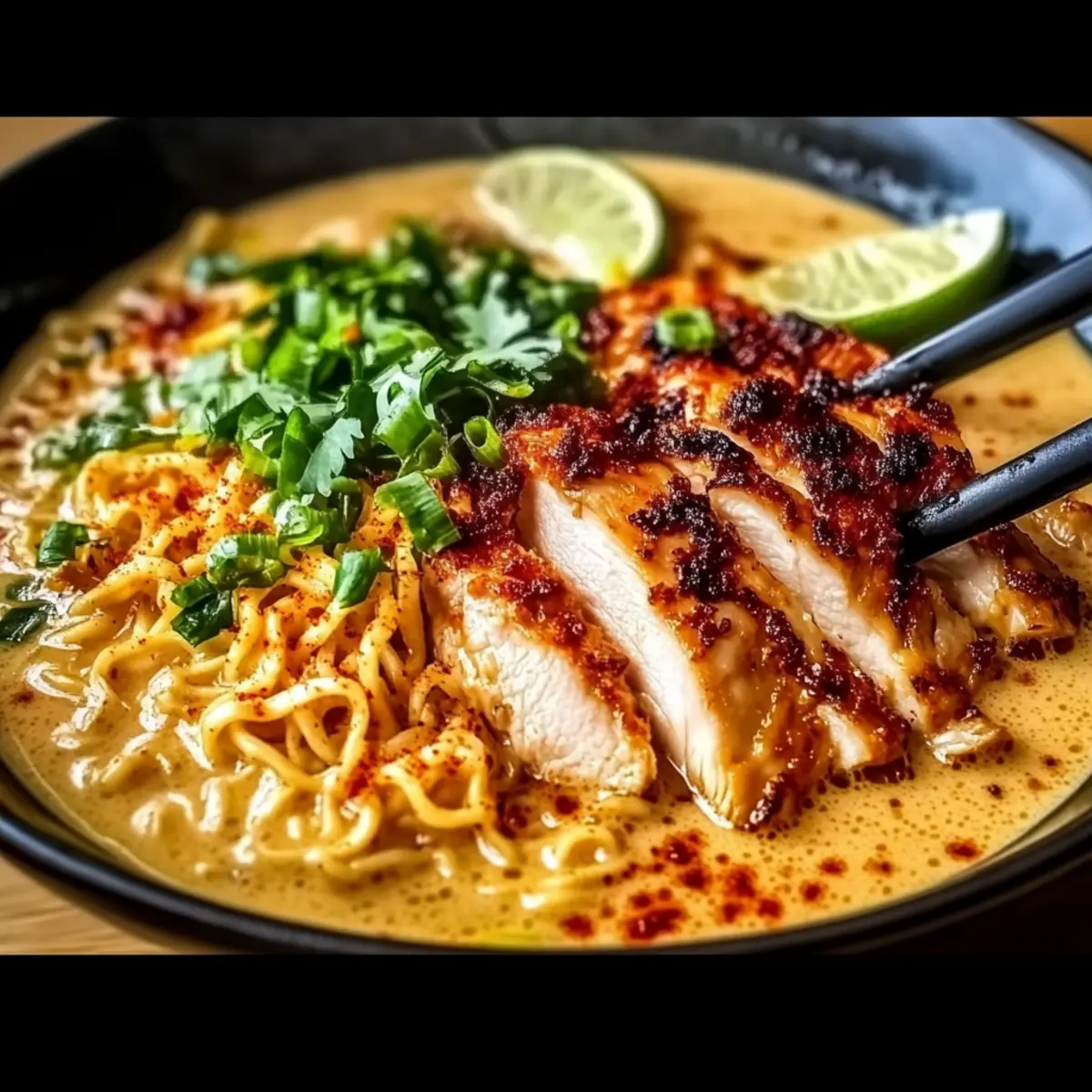Once everything is well mixed and heated through, it’s time to serve! Spoon the Fiery Chicken Ramen into bowls, and drizzle a splash of fresh lime juice over the top for a burst of acidity. Optionally, garnish with extra Parmesan cheese or lime wedges to enhance the dish’s vibrancy and flavor.