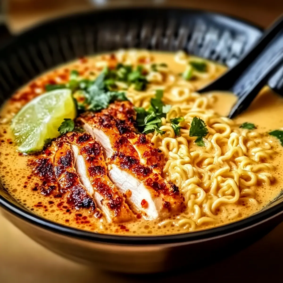As the steam swirled around my kitchen, a tantalizing aroma of garlic and spices beckoned me closer, revealing a pot of pure comfort: Fiery Chicken Ramen with Creamy Garlic Sauce. This dish isn’t just another bowl of noodles; it’s a delightful escape into Asian cuisine that transforms any weeknight dinner into an unforgettable experience. With its easy prep and a perfect balance of spice and creaminess, this ramen stands out as a crowd-pleaser. Whether you’re a seasoned home chef or a kitchen novice, you’ll be captivated by how simple ingredients can come together to create something extraordinary. Not to mention, it’s customizable—swap out chicken for tofu or toss in your favorite veggies for a vibrant twist. Are you ready to stir up some excitement in your kitchen?