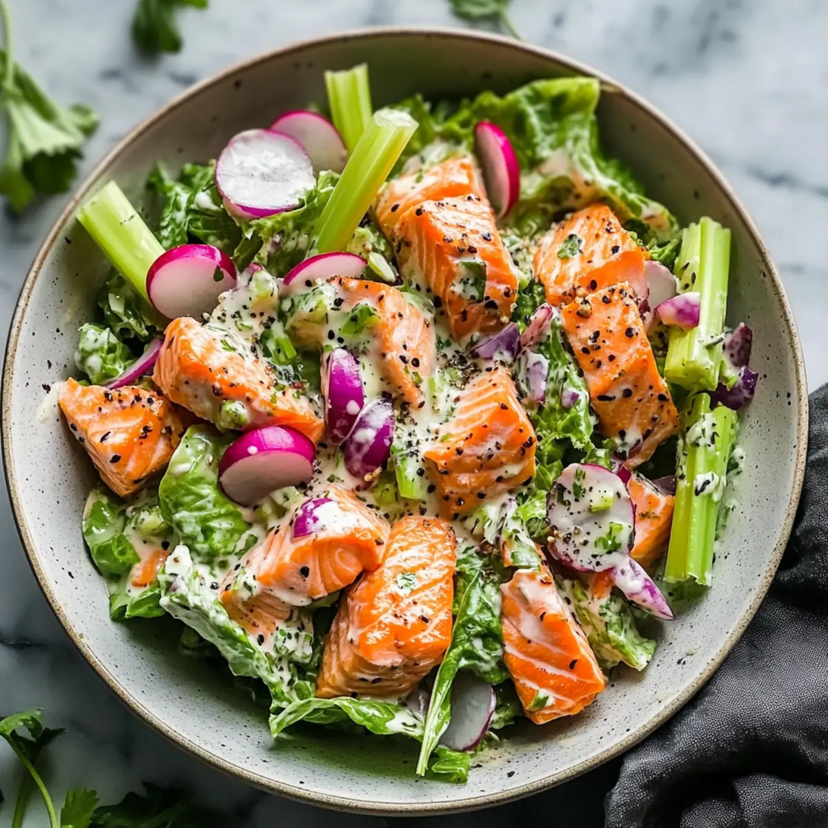 Absolutely! Fresh salmon is best for this salad; it provides the ideal flavor and texture. I recommend opting for wild-caught salmon if possible, as it tends to have a richer taste and firmer texture compared to farmed varieties. Avoid canned salmon to ensure the dish maintains its appeal.