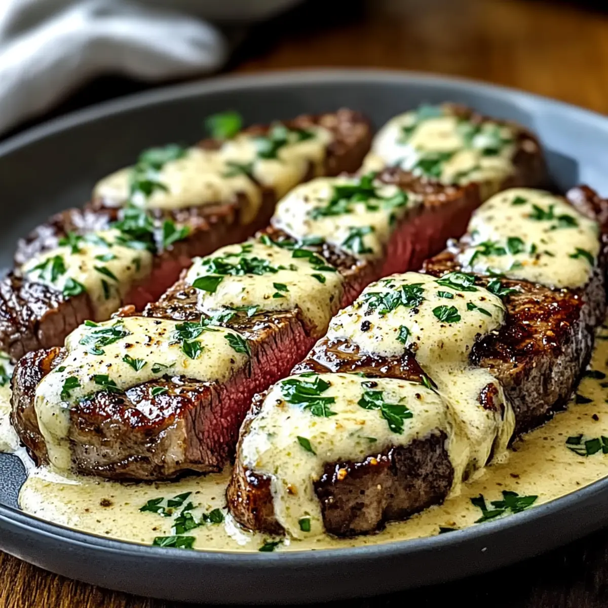 Slice the rested steaks against the grain and arrange them on plates. Drizzle the luscious Parmesan cream sauce generously over each serving, ensuring an inviting presentation. Finish with a sprinkle of fresh parsley for a touch of color, and impress everyone with your home-cooked gourmet masterpiece.