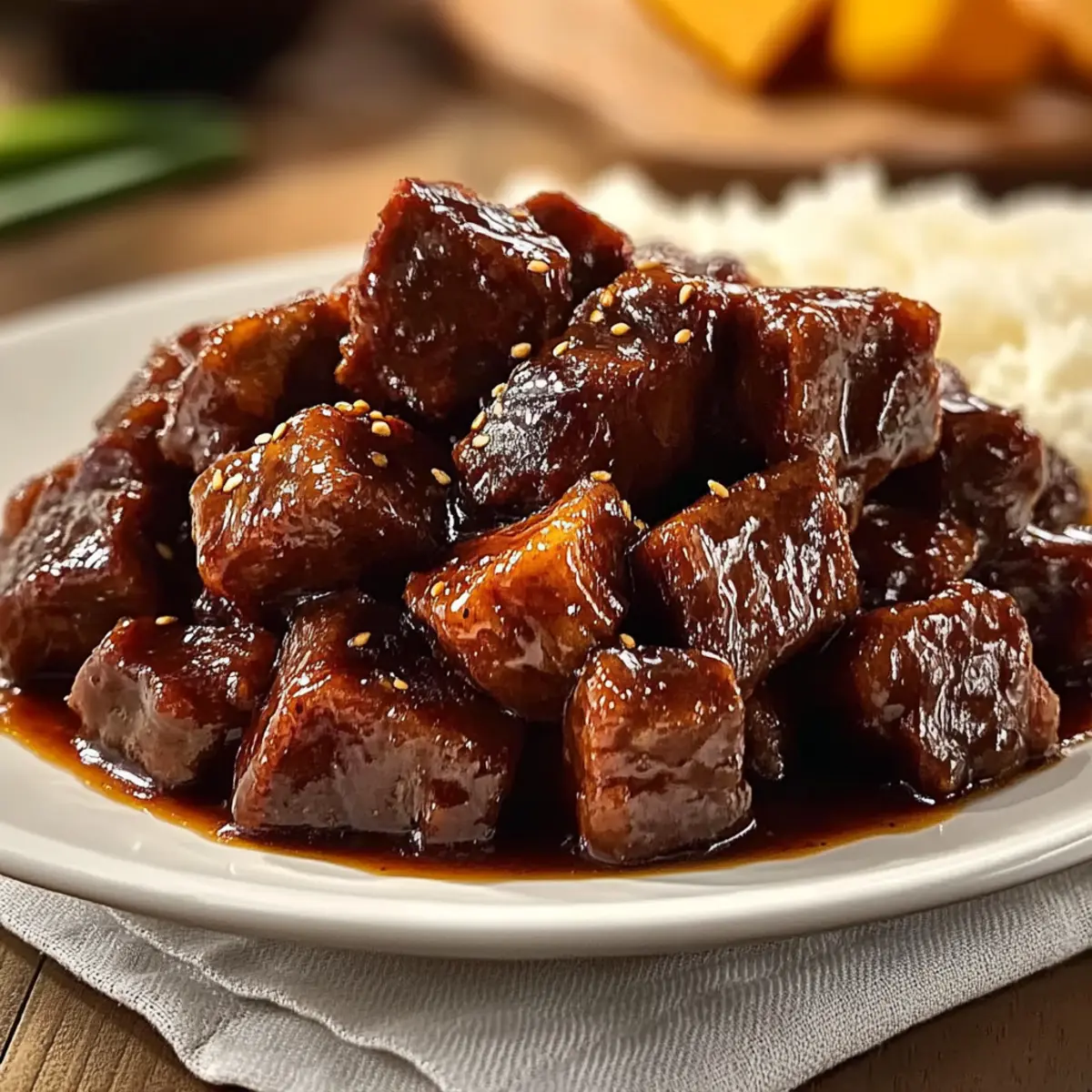 These Glazed Sticky Beef Bites are perfect for meal prep enthusiasts! You can marinate the beef in soy sauce and ginger up to 24 hours in advance, allowing the flavors to penetrate deeply for a more savory dish. Additionally, you can sauté the onions and garlic ahead of time, storing them in the refrigerator for up to 3 days. When ready to serve, simply combine the marinated beef with the prepped aromatics and braise as directed for 2-3 hours. This method saves time on busy nights while ensuring your beef bites are just as delicious, juicy, and comforting as if freshly made. Enjoy the convenience without sacrificing flavor!