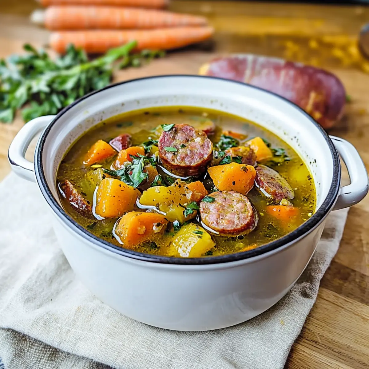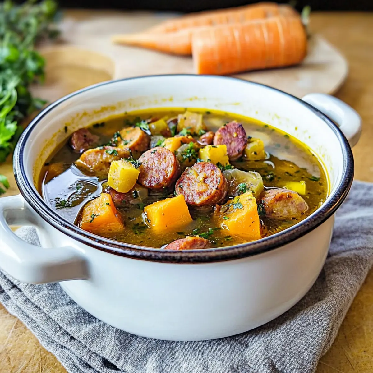 - Tomato Base: For a slightly different flavor profile, throw in a can of diced tomatoes. This will not only enhance the broth but introduce a delightful acidity that balances the richness of the sausage.