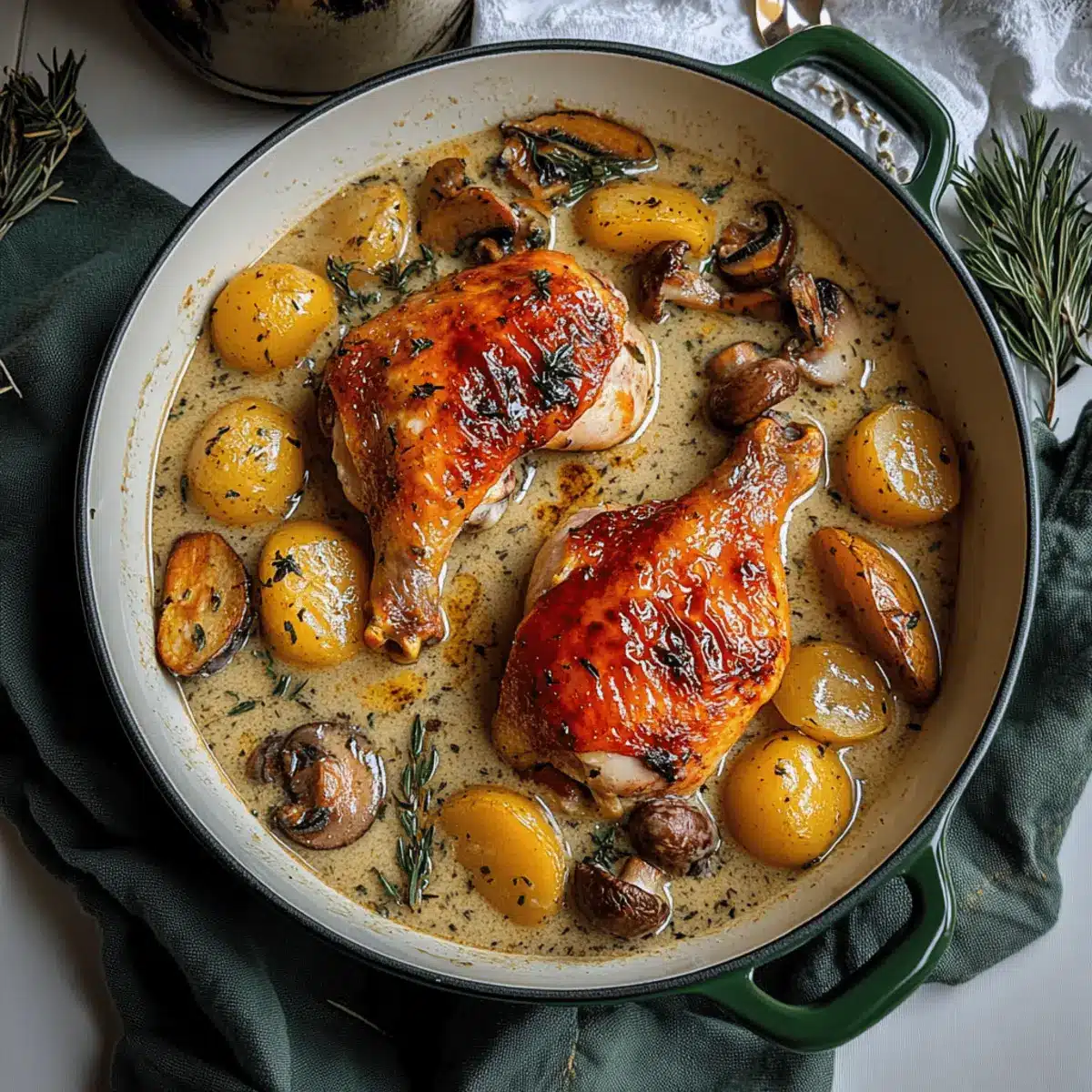 Delicious Herb Roasted Chicken in Creamy White Wine Sauce