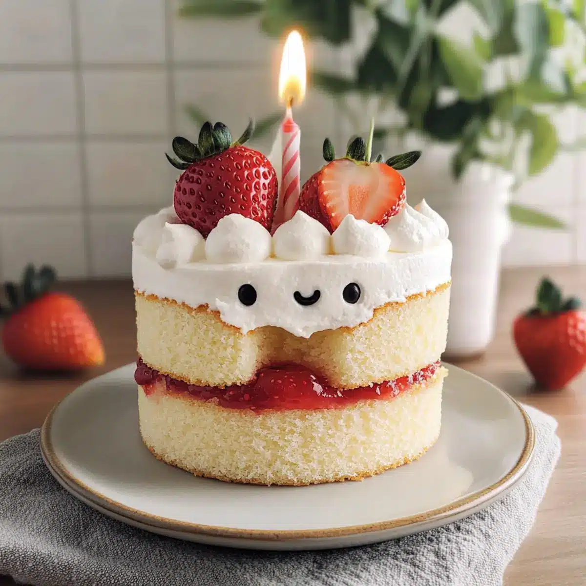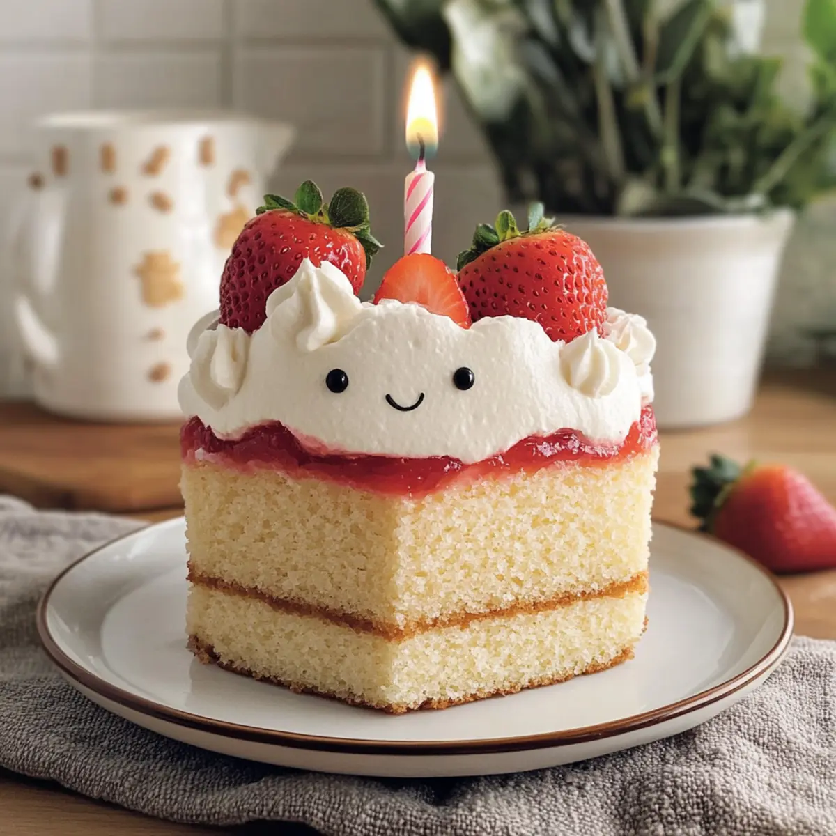 The Jellycat Birthday Cake is perfect for those frenetic days when you want to celebrate but need to save time! You can bake the cake layers up to 3 days in advance; simply allow them to cool completely, then wrap each layer tightly in plastic wrap and refrigerate. The whipped cream can be prepared up to 24 hours ahead—just store it in an airtight container in the fridge to keep it fresh and fluffy. When you’re ready to serve, layer the cake with whipped cream and strawberry jam, frost the top, and decorate with fresh strawberries. This way, you’ll have a stunning, delicious centerpiece ready with minimal last-minute effort!