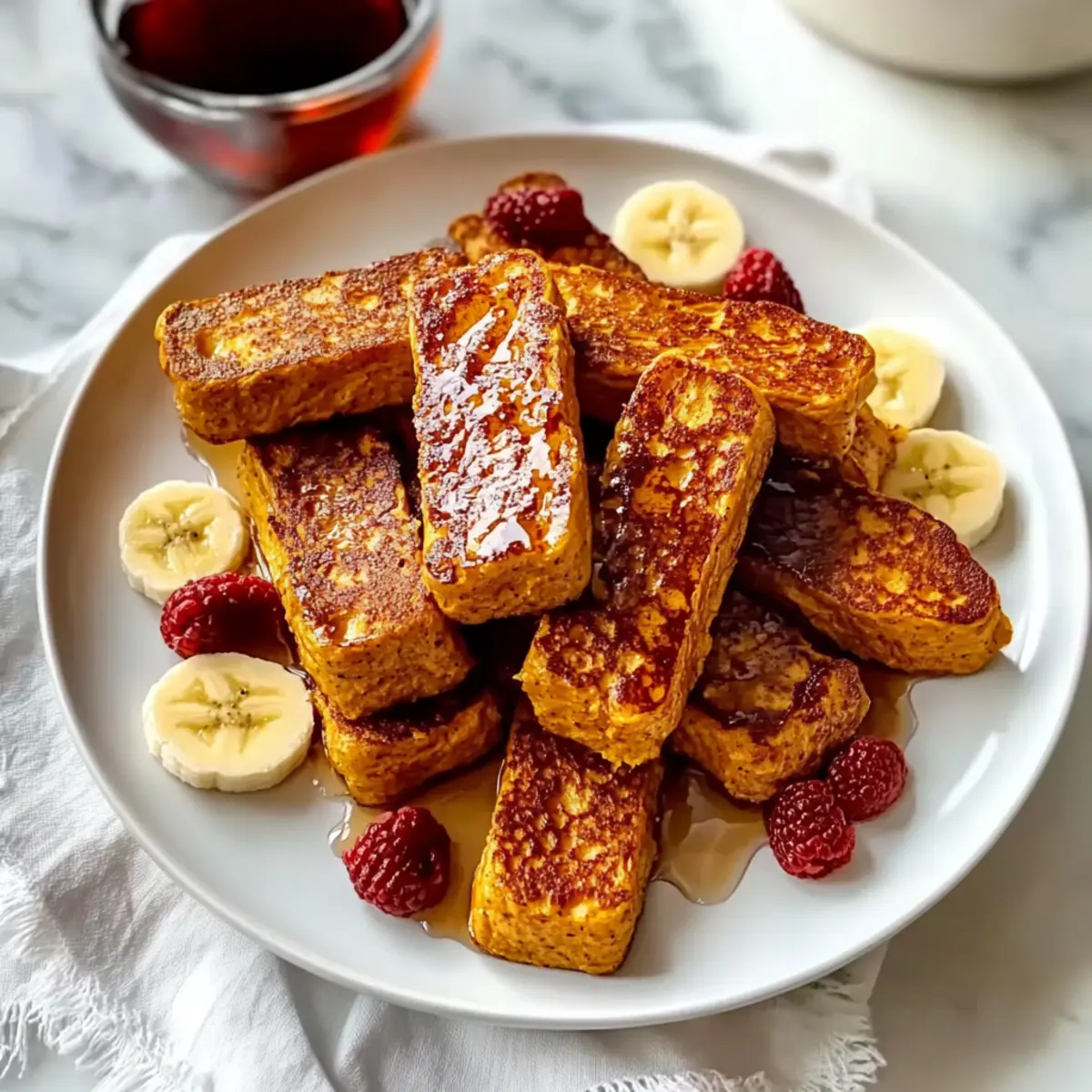 Remove the perfectly cooked pumpkin French toast strips from the pan and place them on a warm serving plate. You can serve them up immediately, allowing the inviting aroma to fill the air. Consider garnishing with optional toppings like fresh fruit or a light drizzle of pure maple syrup to elevate this healthy breakfast option for your toddlers.