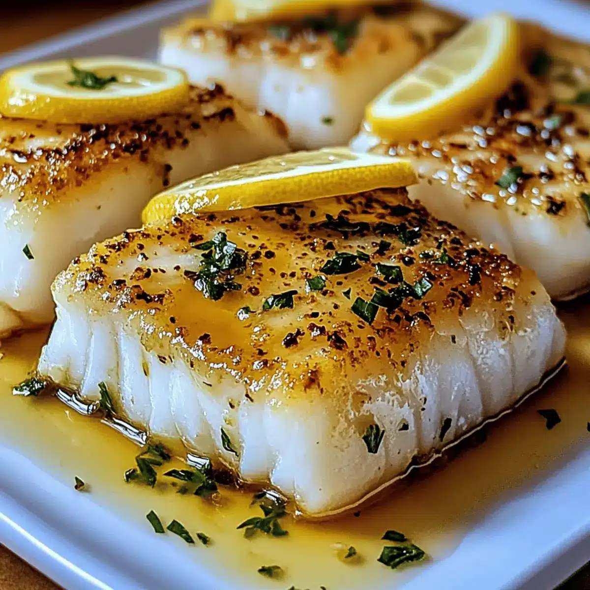 - Pour the lemon butter mixture over the cod fillets.