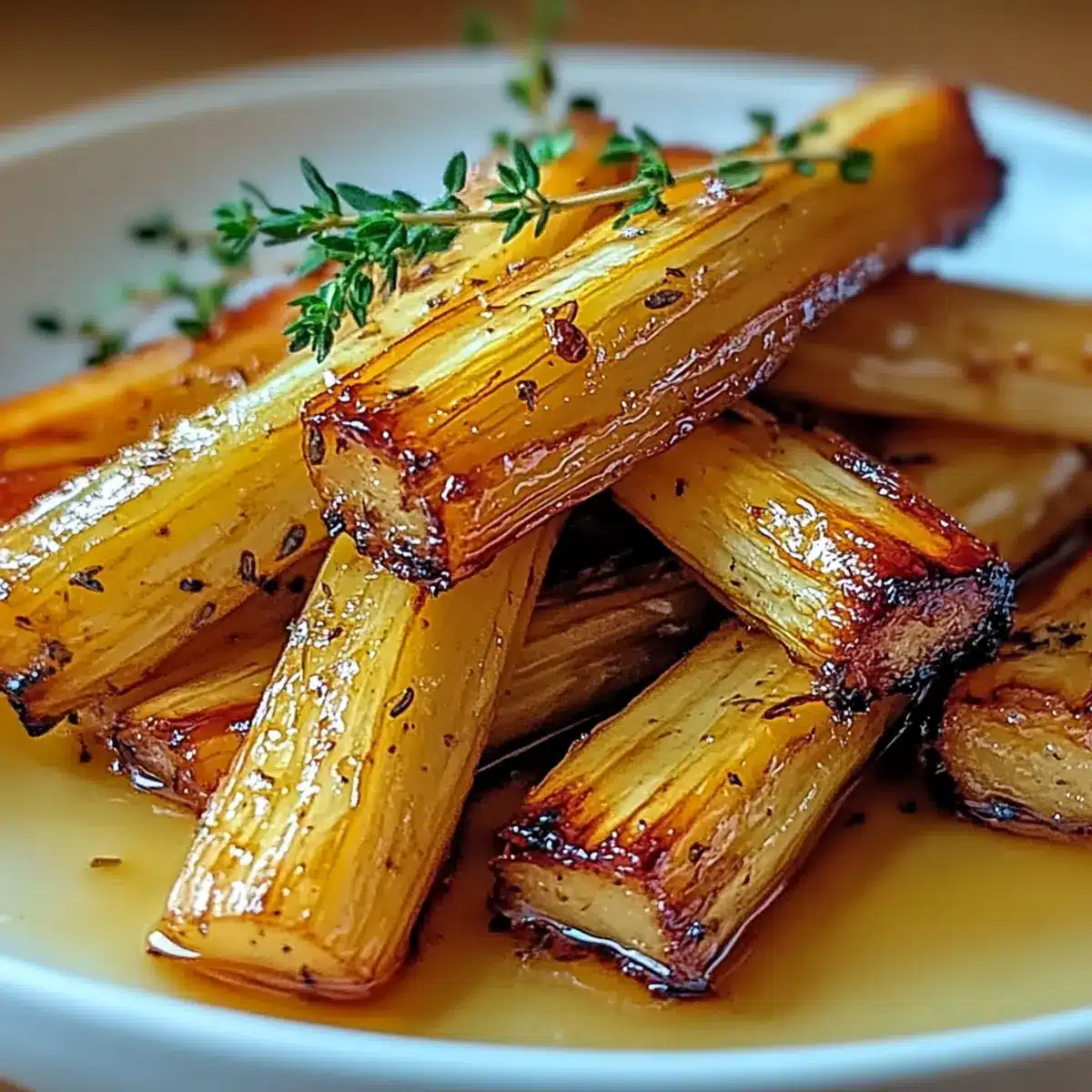 - Let parsnips rest, then transfer to a serving platter and garnish with fresh thyme.