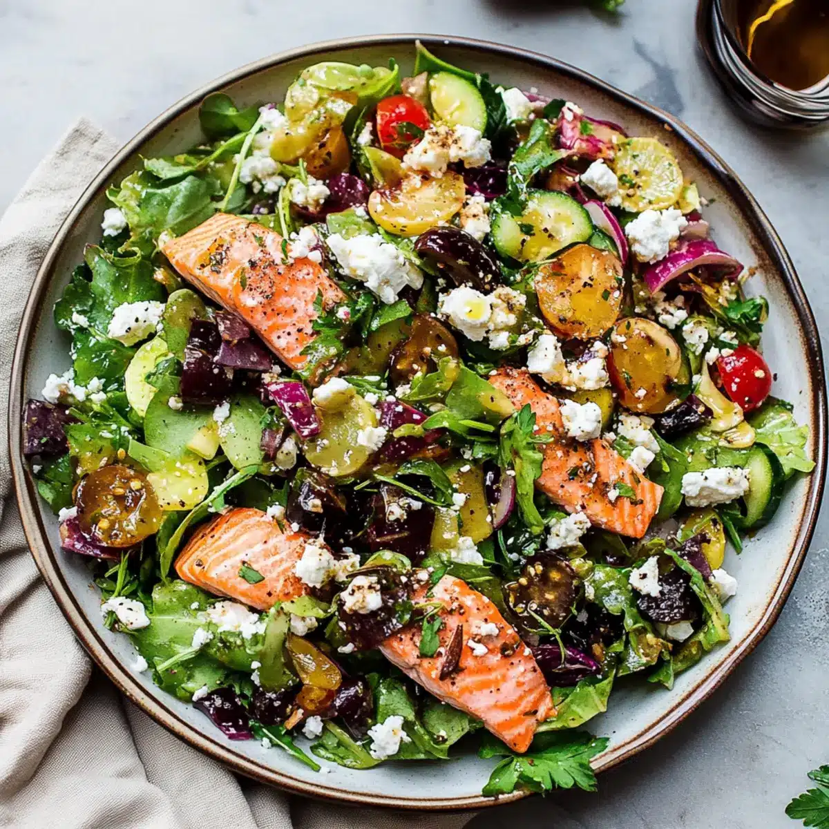 - Make-Ahead Dressing: Prepare the lemon-Dijon vinaigrette in advance and refrigerate. This enhances the flavors, making your Mediterranean Salmon Salad even more delicious.