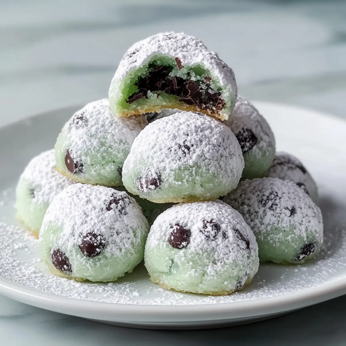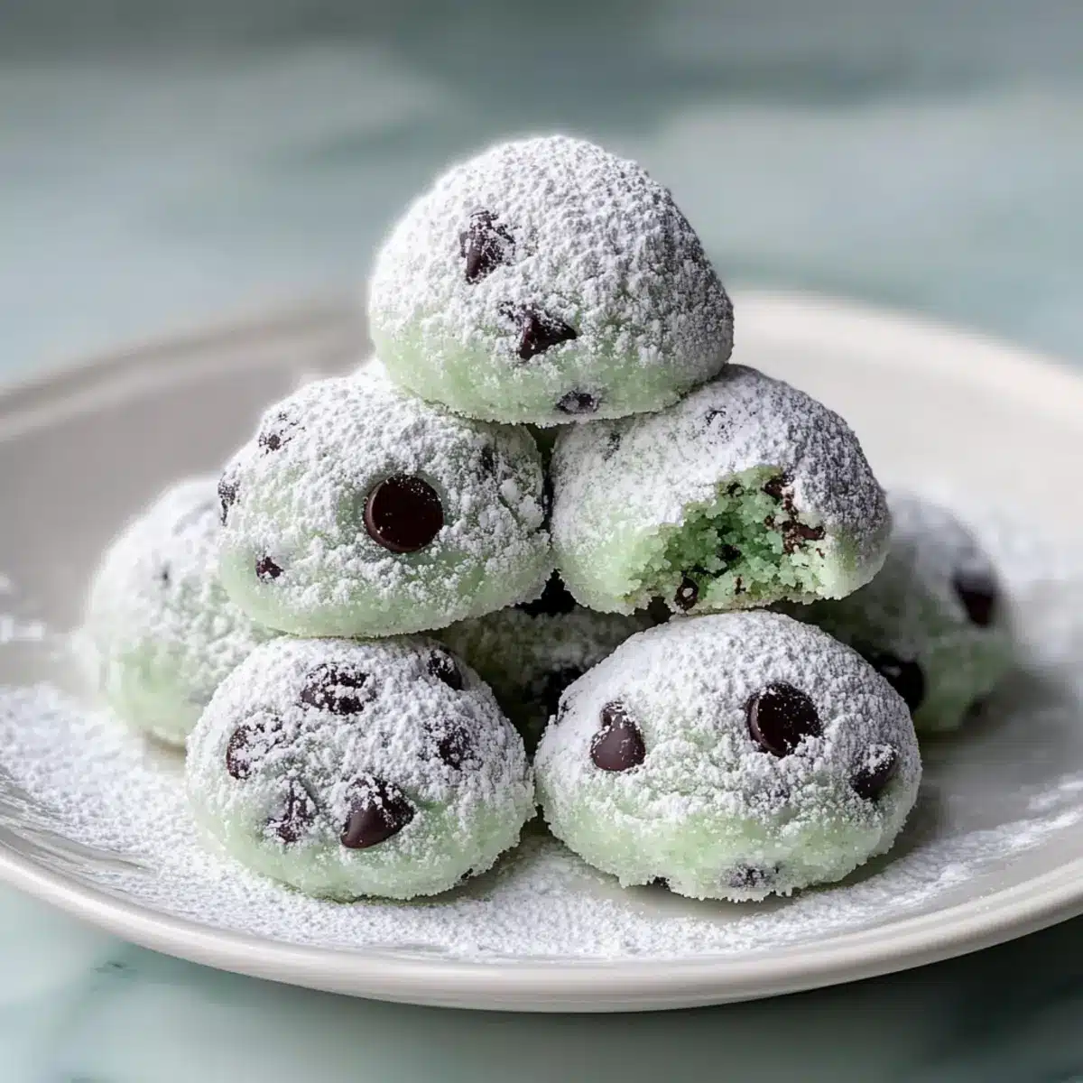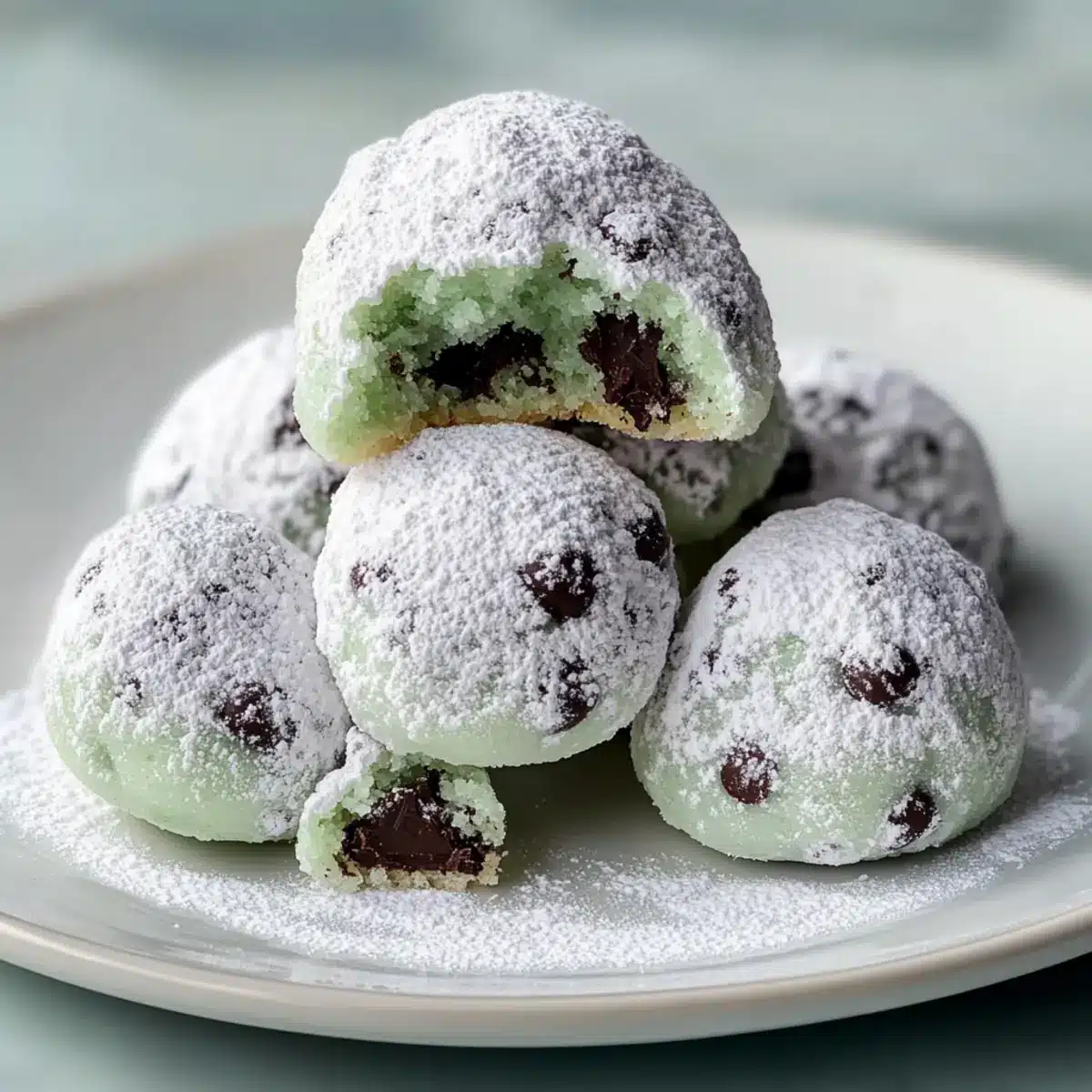 Mint Chocolate Chip Snowball Cookies that Melt in Your Mouth