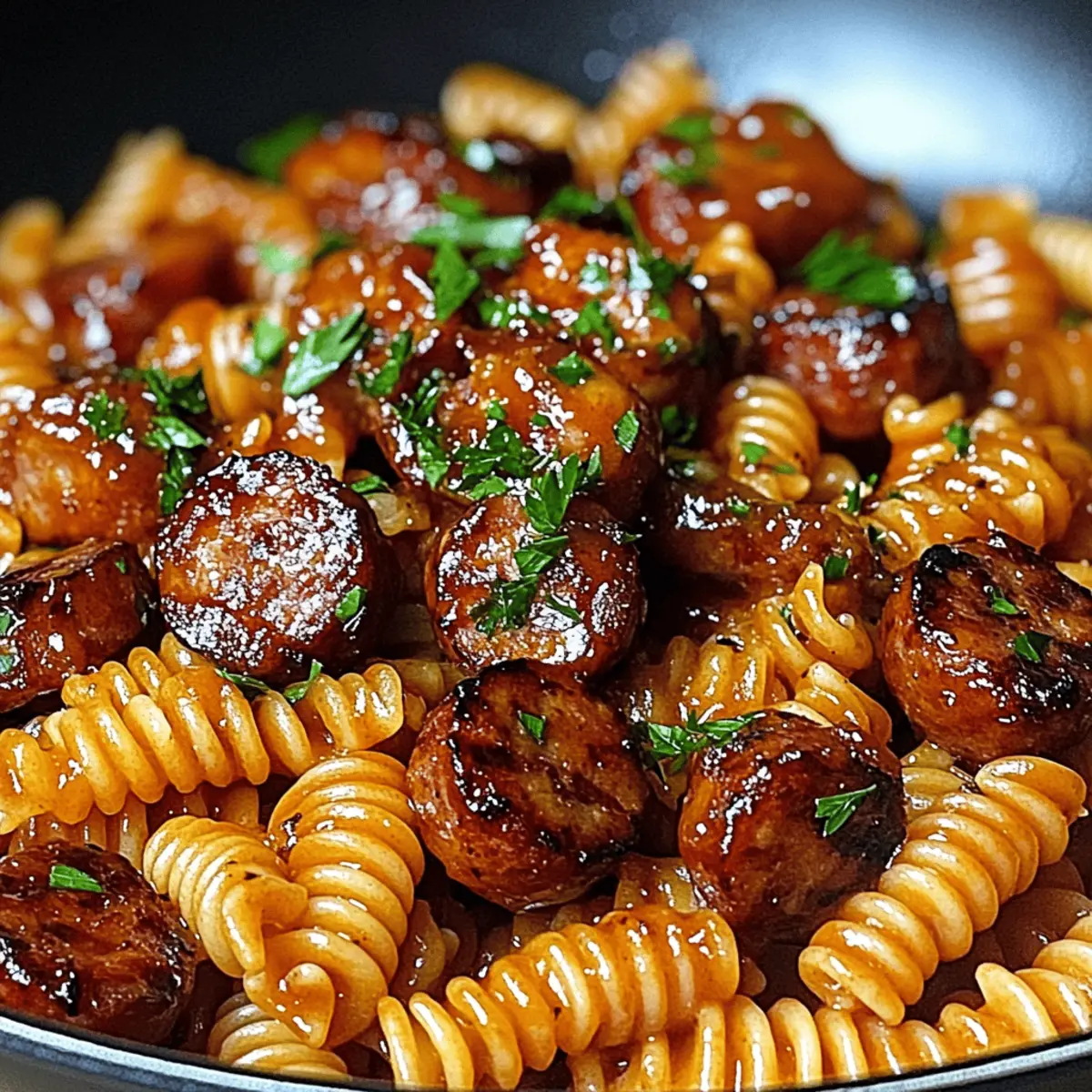 These One-Skillet Spicy Honey BBQ Sausage & Pasta are perfect for busy cooks looking to save time during the week! You can prepare the sausage and the sauce up to 24 hours in advance. Simply cook the sausage until golden brown, and then let it cool before storing it in an airtight container in the refrigerator. For the sauce, mix together the BBQ sauce, honey, and spices, and store it in a separate container. When you’re ready to eat, just reheat both components in the skillet with the cooked rotini pasta for about 5 minutes, ensuring everything is heated through and coated in that delicious sweet-and-spicy flavor. This way, you’ll enjoy a quick and satisfying meal that tastes just as good as when freshly made!