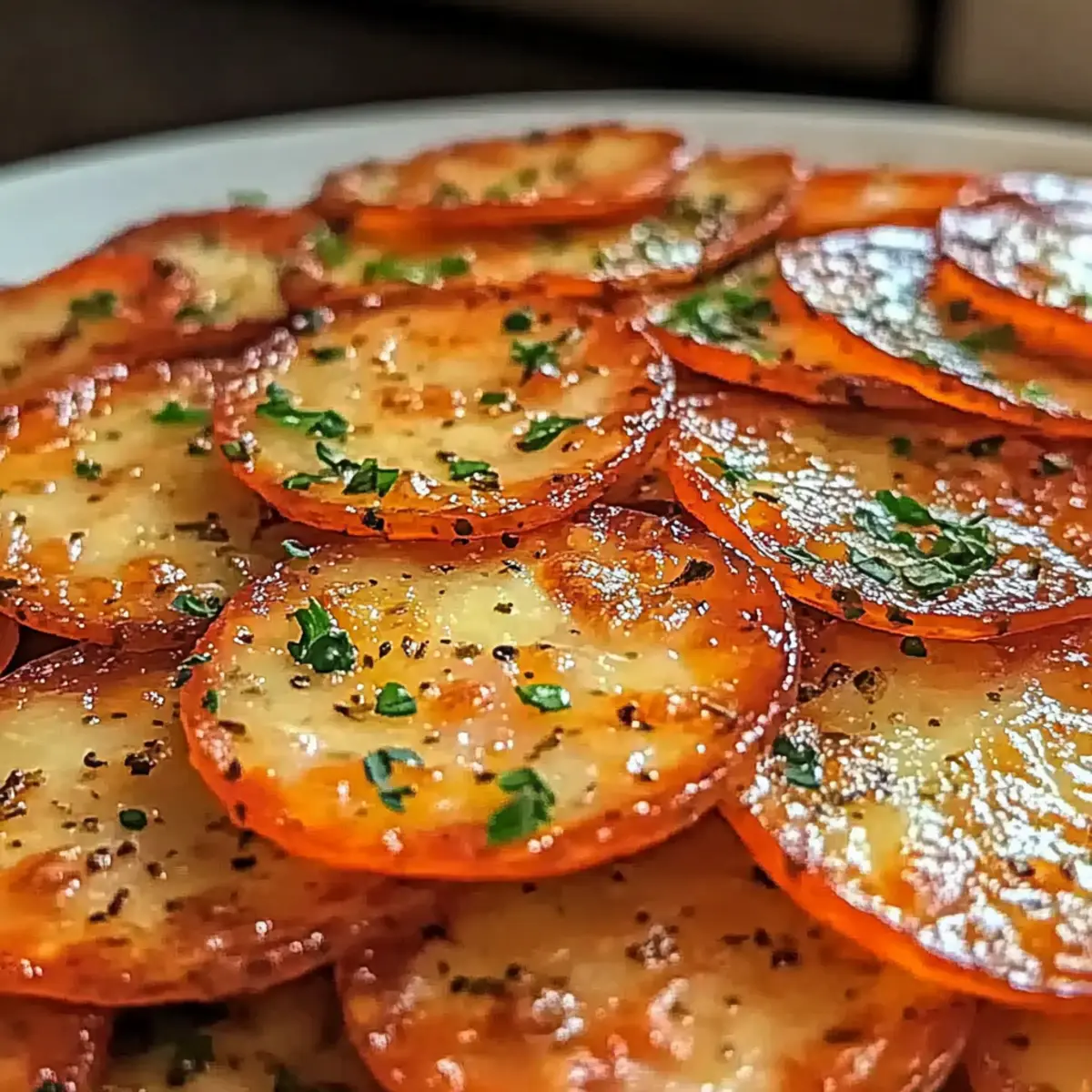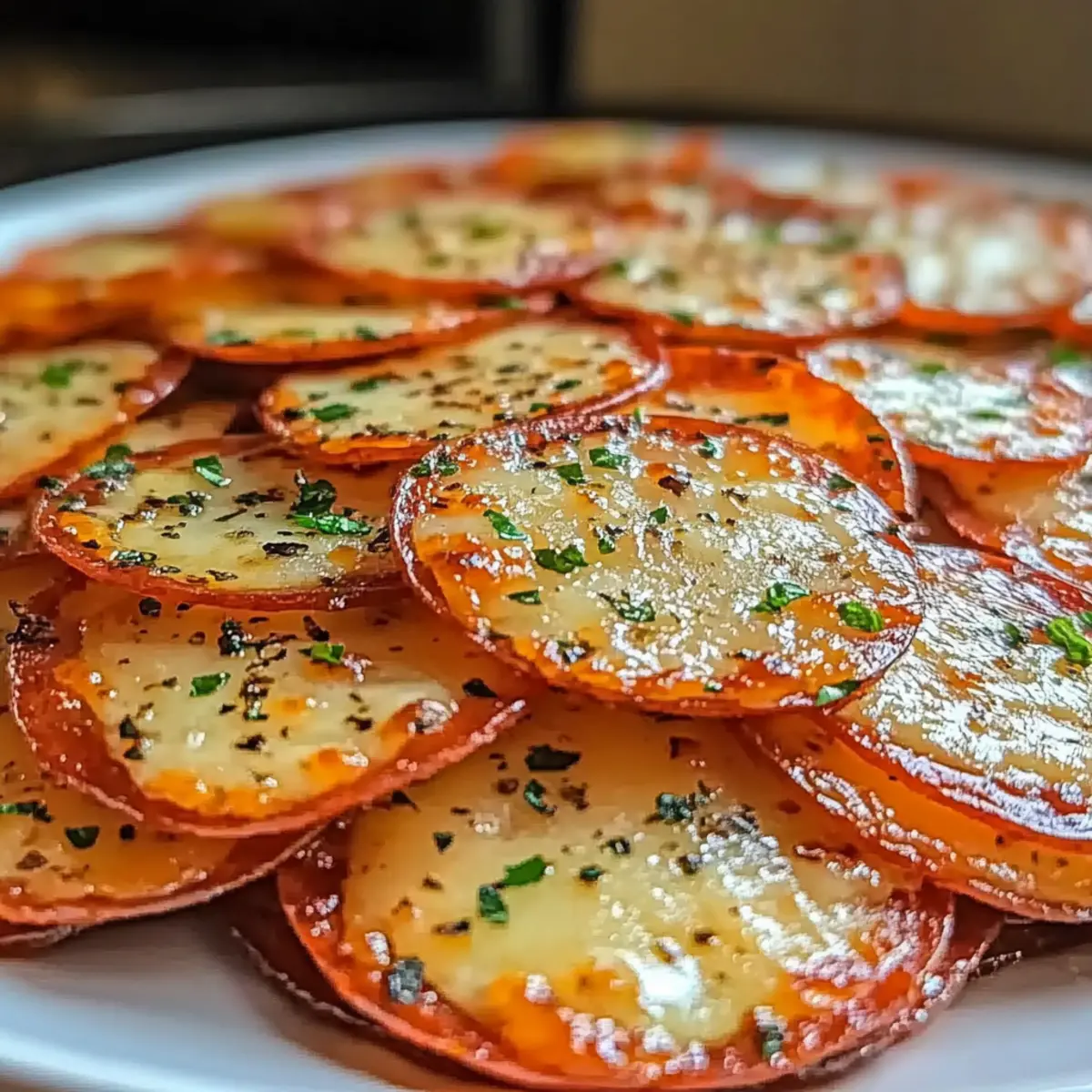 After baking, remove the sheet from the oven and allow the crisps to cool on the baking sheet for a couple of minutes. Once they’ve set slightly, transfer them to a wire rack to cool completely. If you’re feeling fancy, garnish them with freshly chopped parsley for a beautiful presentation. You’re now ready to serve this irresistible Pepperoni Cheese Crisps snack!
