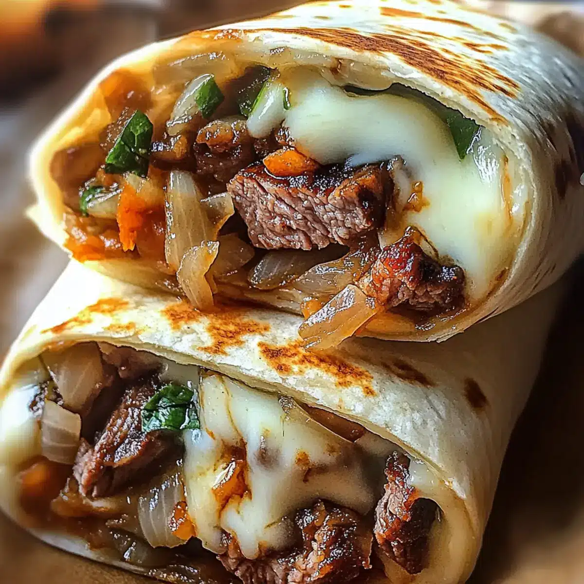 Slice with Care: Always slice the ribeye steak thinly against the grain for maximum tenderness; this ensures a delightful texture in every bite of your Philly Cheesesteak Wrap.