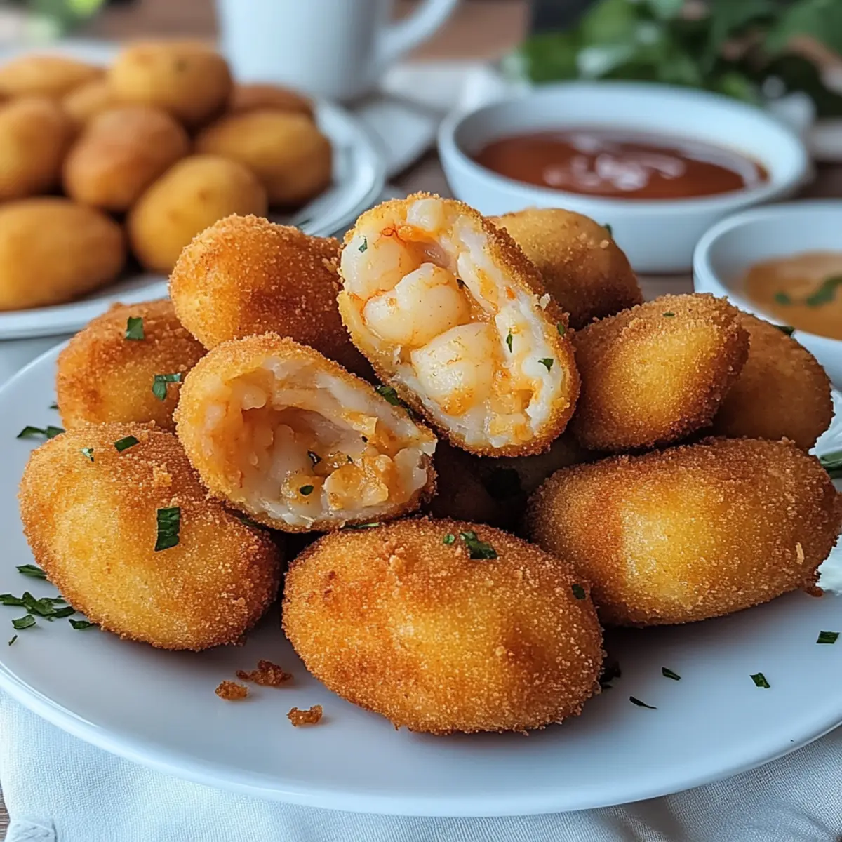 Crispy, golden goodness: Each bite features a perfectly crunchy coating that contrasts beautifully with the rich, creamy filling. Flavor explosion: The combination of succulent shrimp and aromatic herbs guarantees a bite that explodes with savory flavor. Endless customization: Feel free to get creative—add cheese, spices, or swap the shrimp for crab! Party-perfect snack: These croquettes are sure to be the hit of any gathering—easy to serve and even easier to love. Plus, they can be ready in no time, making them a great option alongside your next dish, like Garlic Shrimp Over or Shrimp Dirty Rice. Get ready for your friends and family to keep coming back for more!