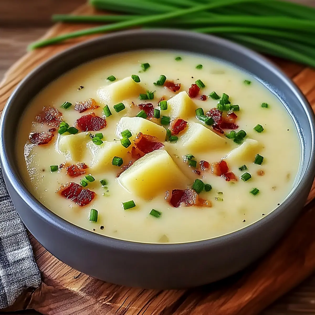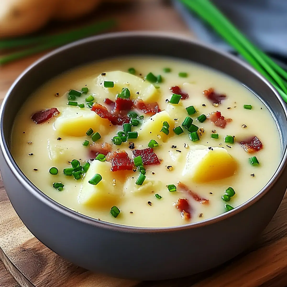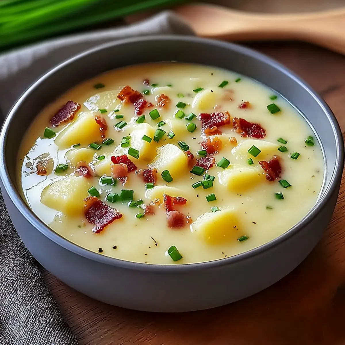 Finally, season your creamy potato soup with salt and black pepper to taste, adjusting as needed. Serve hot, garnished with crumbled bacon and chopped fresh chives or green onions for added flavor and crunch. This comforting bowl of potato soup is now ready to delight your taste buds!