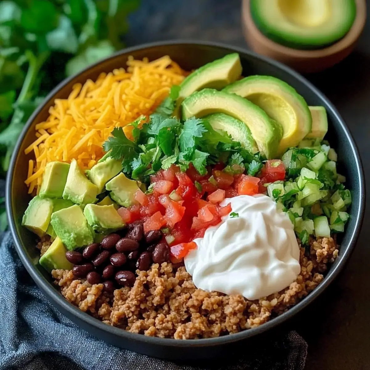 Customization Galore: This Quick and Easy Taco Bowl is not just a meal—it’s a blank canvas! You can easily swap ground beef for turkey or opt for plant-based crumbles to fit your dietary needs.