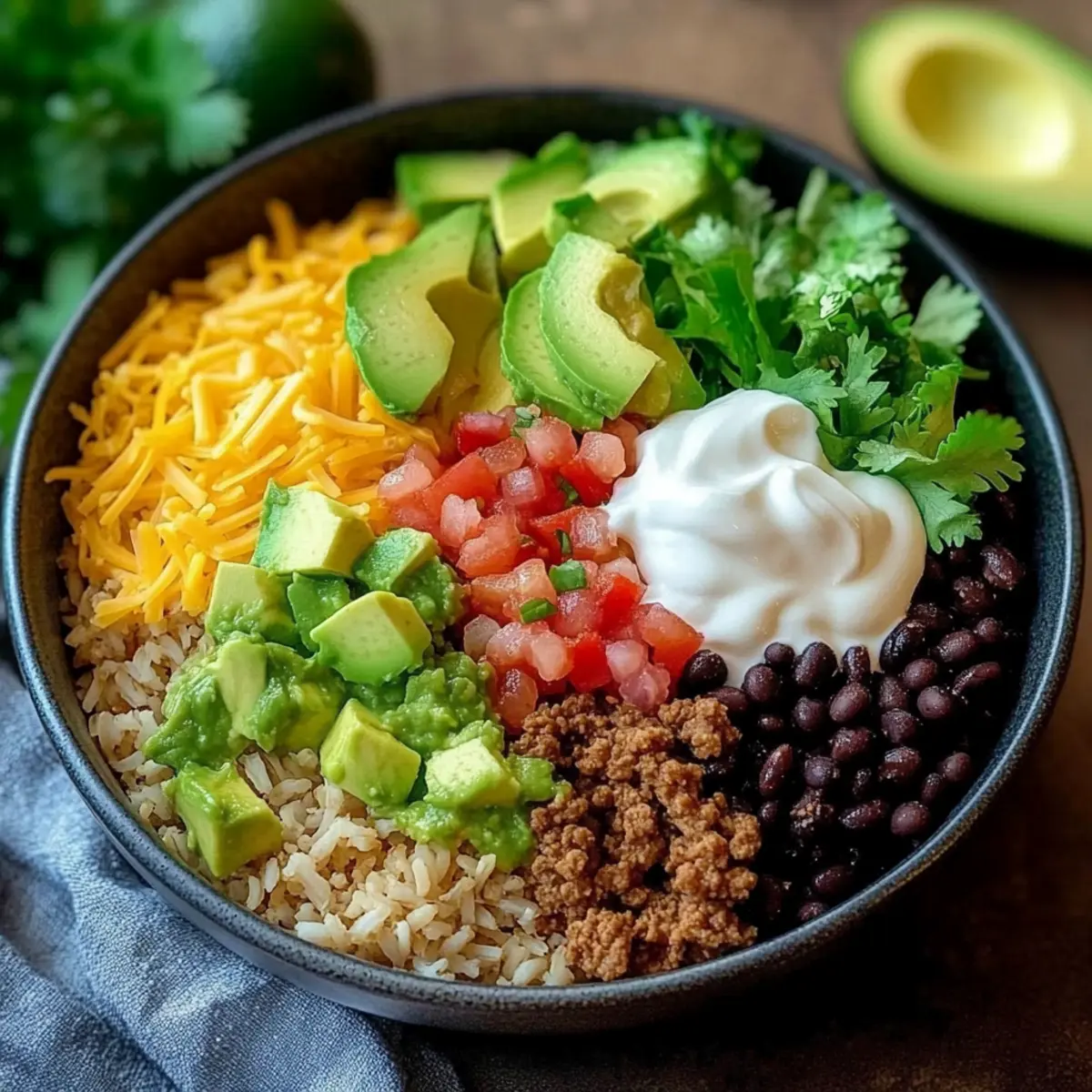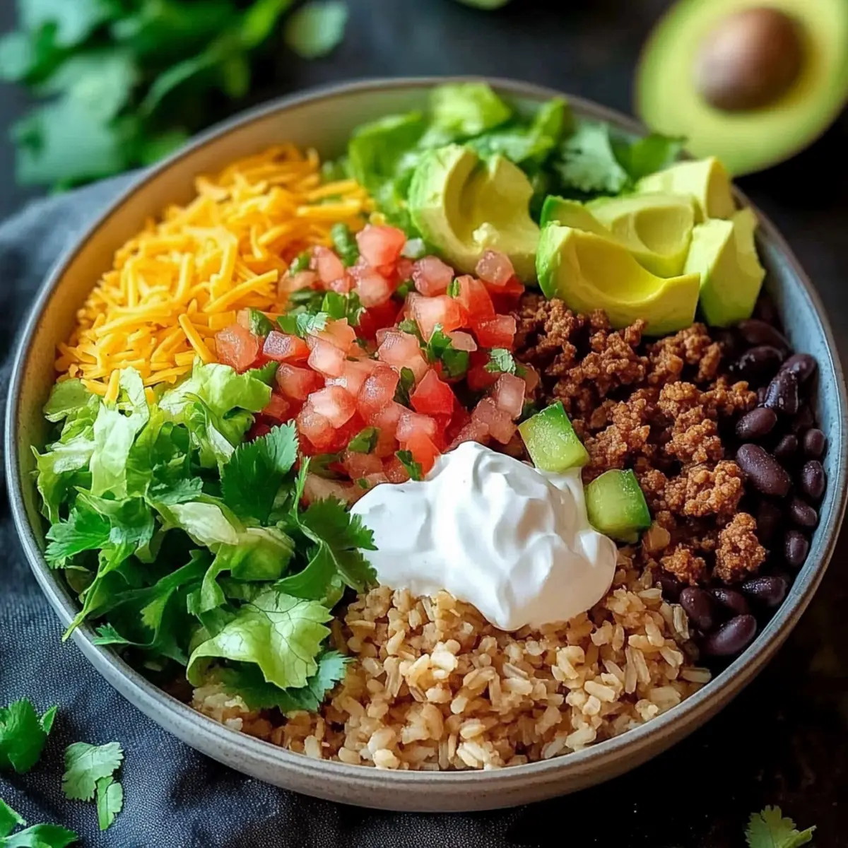 Certainly! For a vegetarian or vegan taco bowl, swap the ground beef with lentils, black bean crumbles, or grilled veggies. You can also use dairy-free alternatives for cheese and sour cream to keep it plant-based while still being delicious and satisfying.