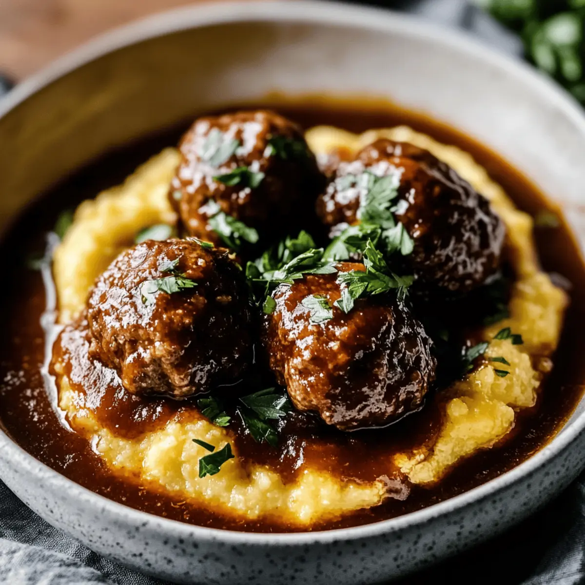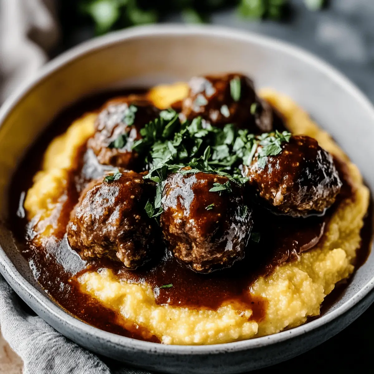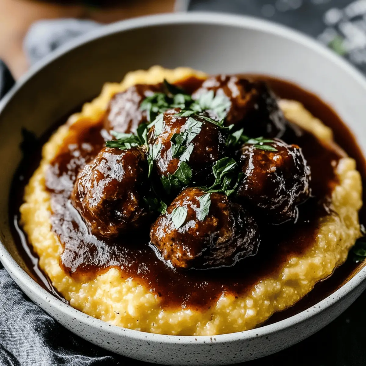 Creamy Polenta Perfection: The cheesy polenta is a comforting complement, adding a luscious texture that balances the savory meatballs beautifully.
