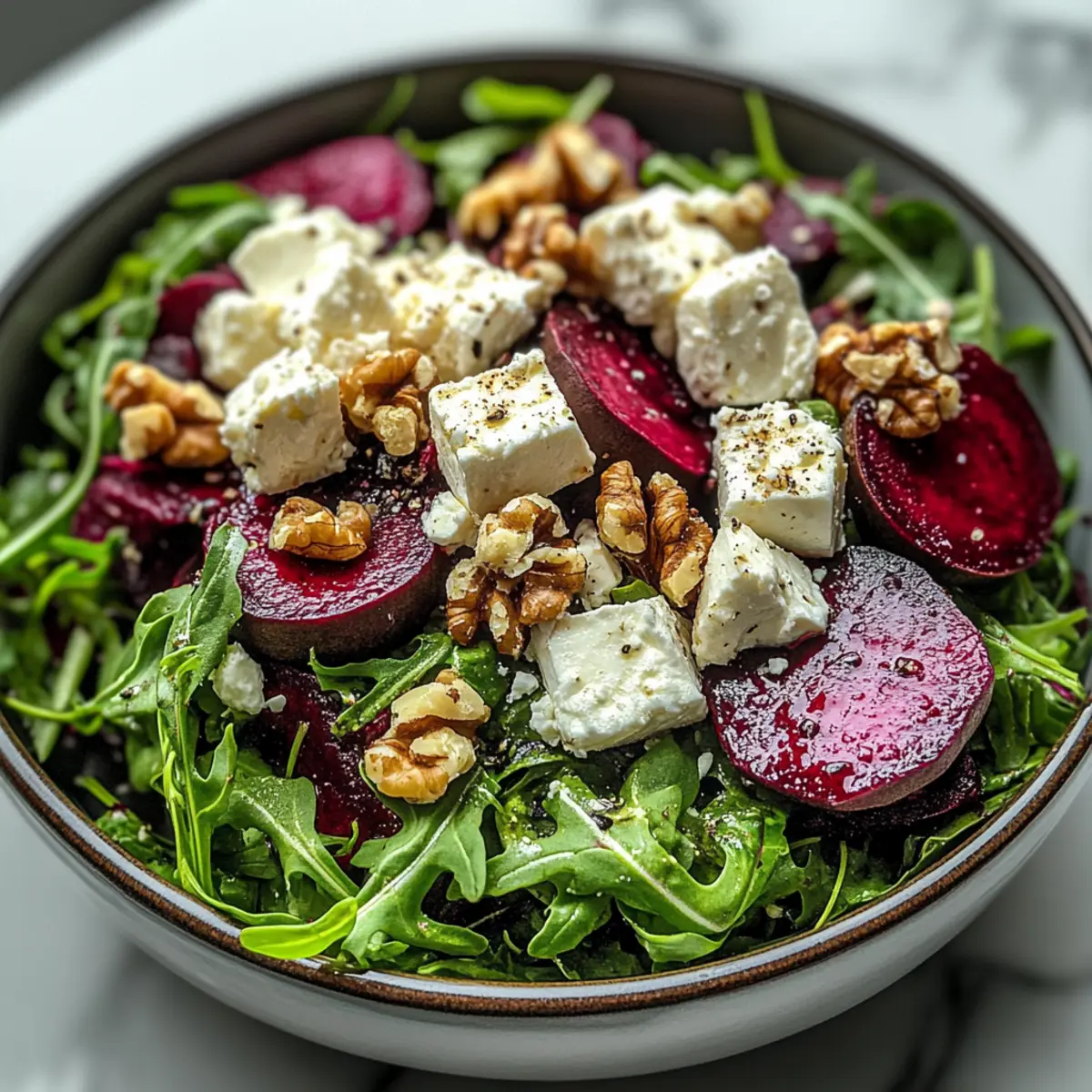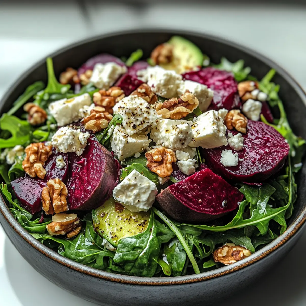 Nutrient-Rich Feasting: Packed with vibrant beets and peppery arugula, this salad delivers a hearty dose of vitamins and minerals.