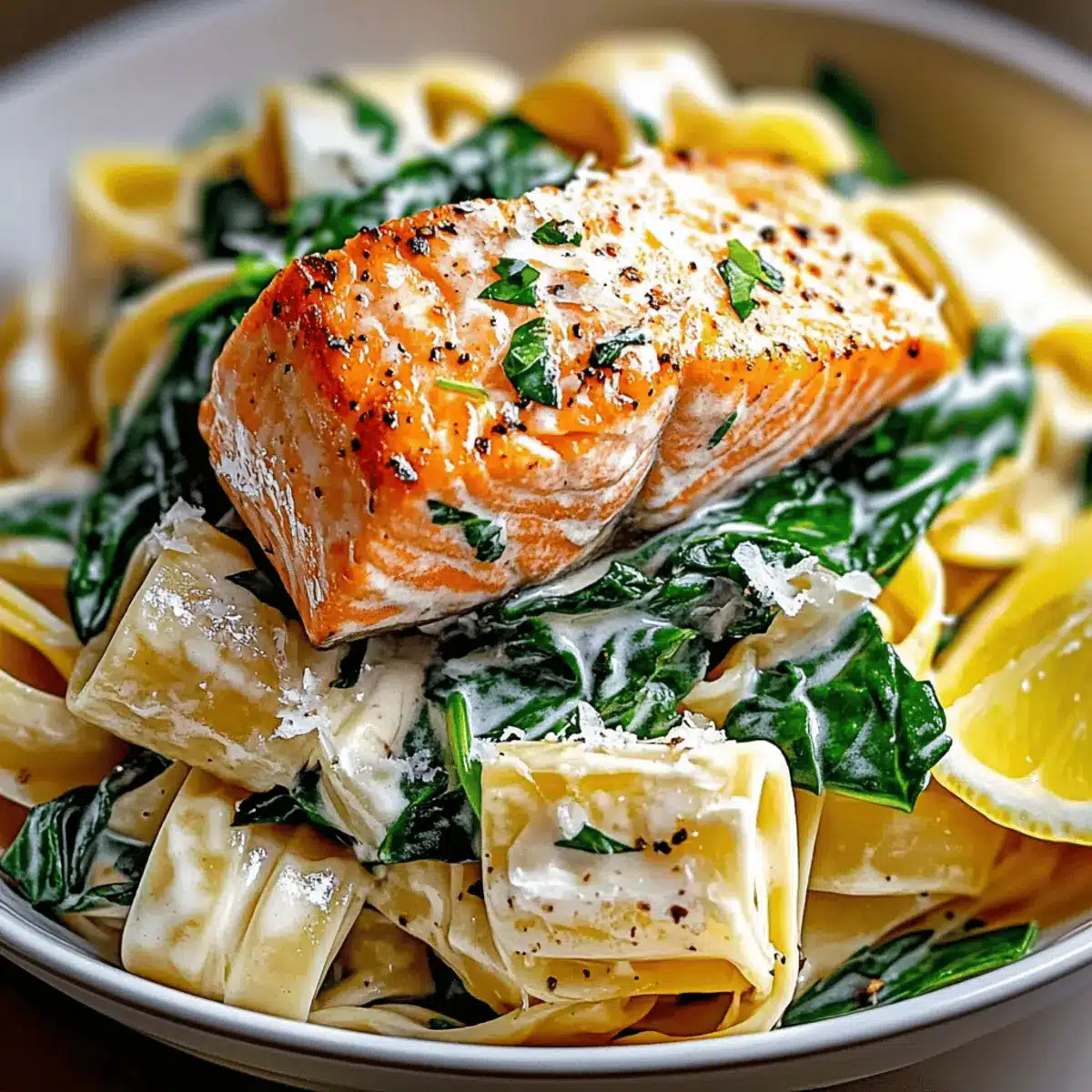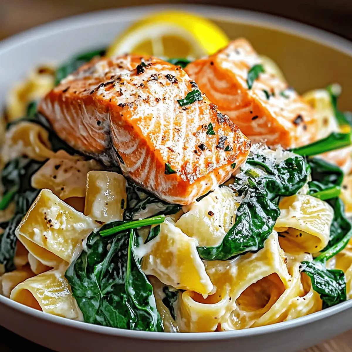 Delicious Salmon Spinach Pasta Dish for a Cozy Dinner Night