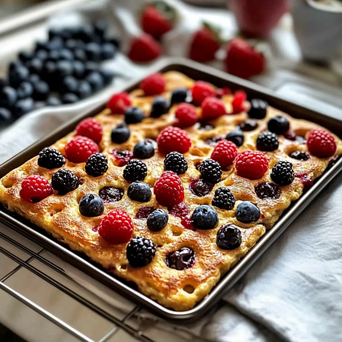 Before sliding your sheet pan into the oven, sprinkle your favorite toppings over the batter. Options like chocolate chips, fresh berries, or banana slices will not only enhance the flavor but also make your quick and easy sheet pan pancakes visually appealing. Feel free to get creative with the combinations!