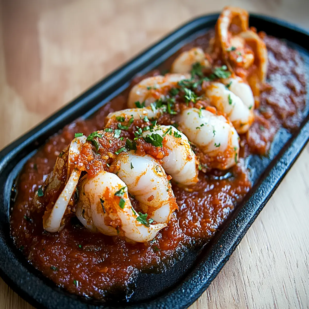 Delicious Shrimp Stuffed Squid in Savory Tomato Sauce