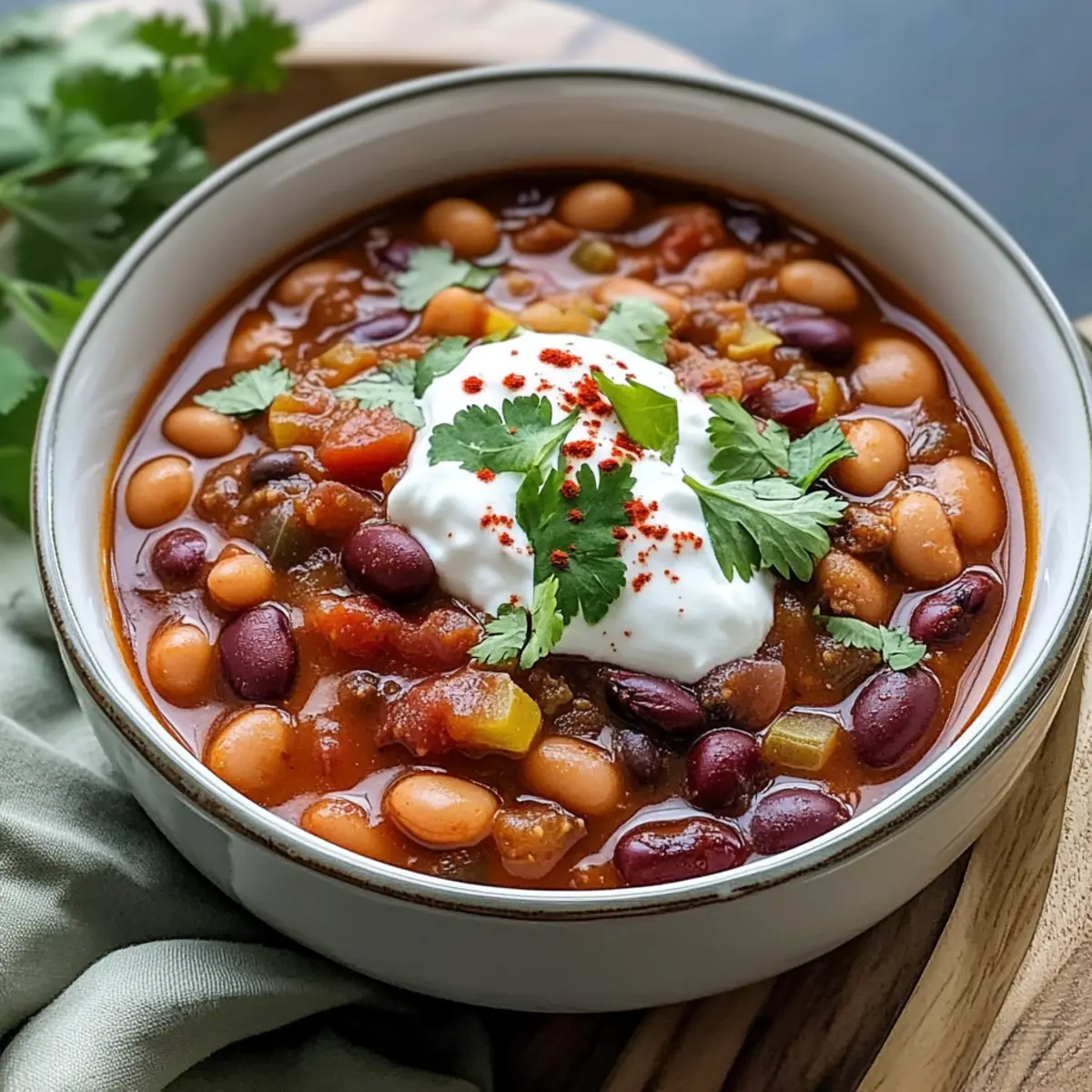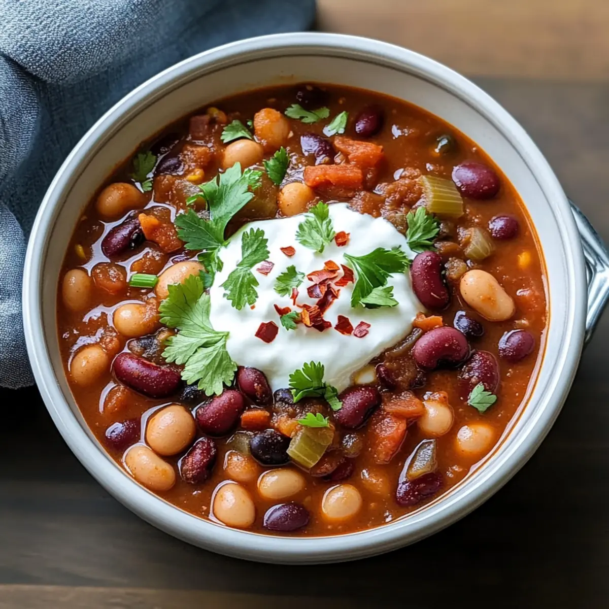Delicious Slow Cooker Three-Bean Vegetarian Chili for Cozy Nights