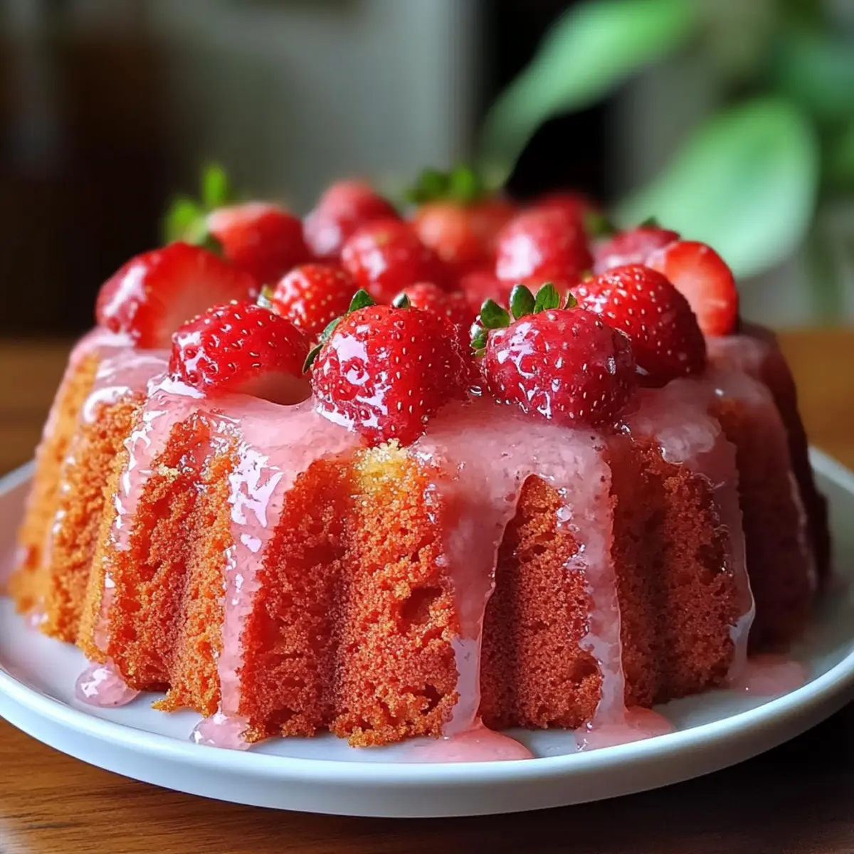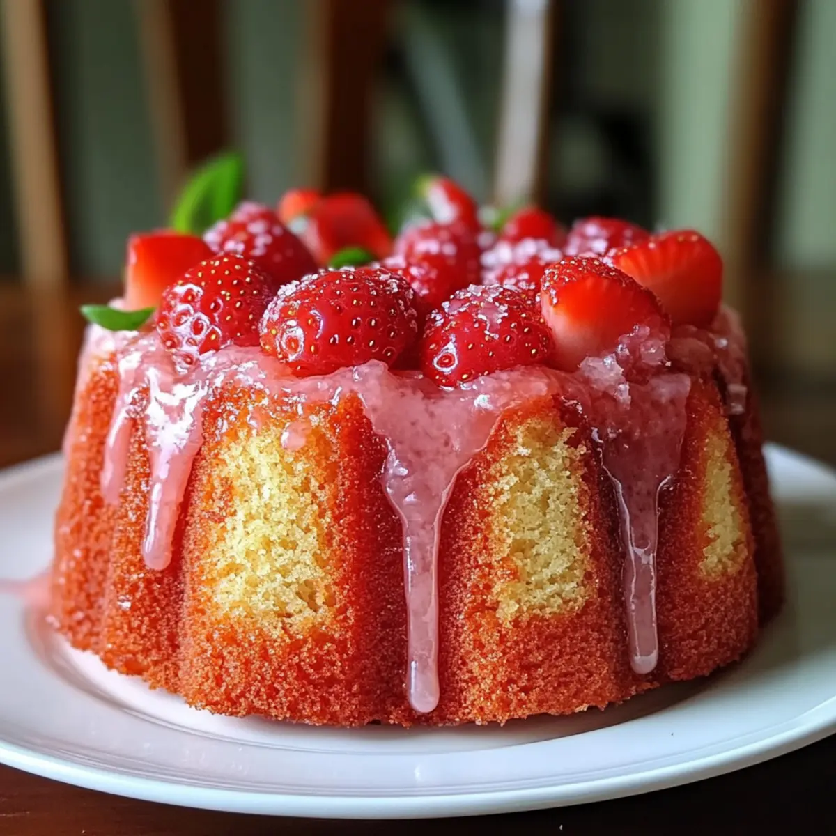 Once the cake has completely cooled, drizzle the strawberry glaze over the top. Let it set briefly before slicing into your Easy Strawberry Pound Cake. This delightful dessert is now ready to be enjoyed at picnics or family get-togethers, bursting with summer flavor!