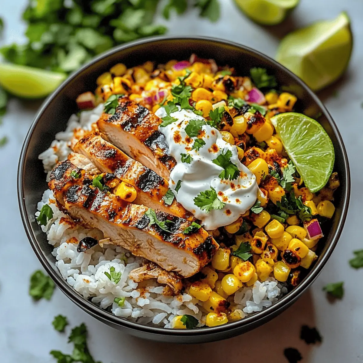 Marinate Time: Enhance flavor by marinating your chicken for 1-2 hours. This coax ensures delicious depth in every bite of your Street Corn Chicken Rice Bowl.