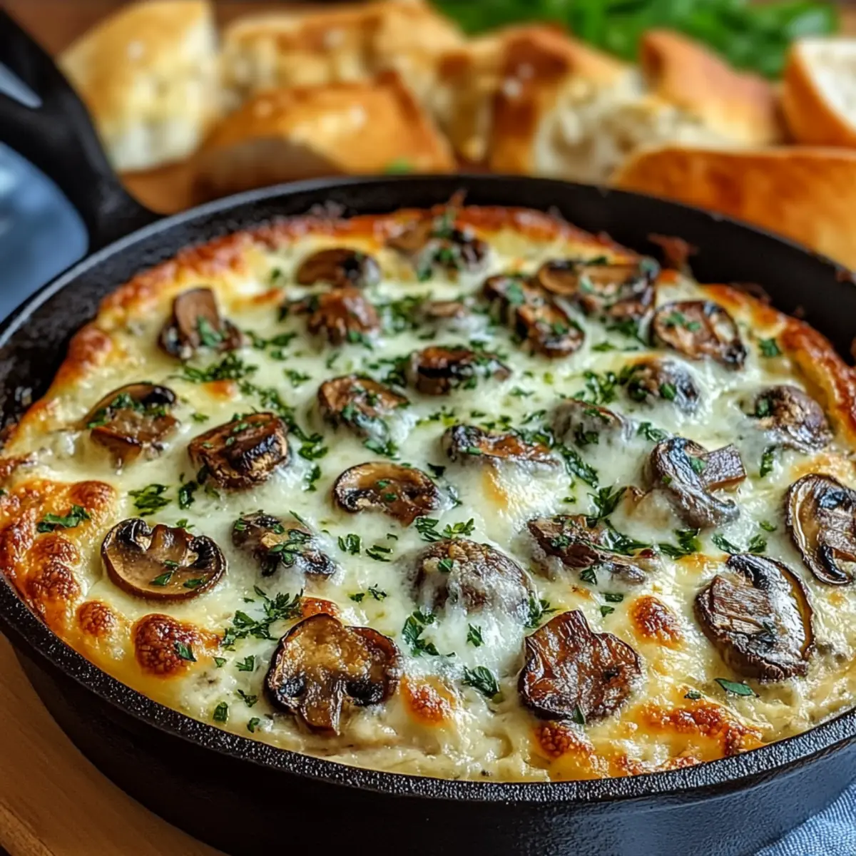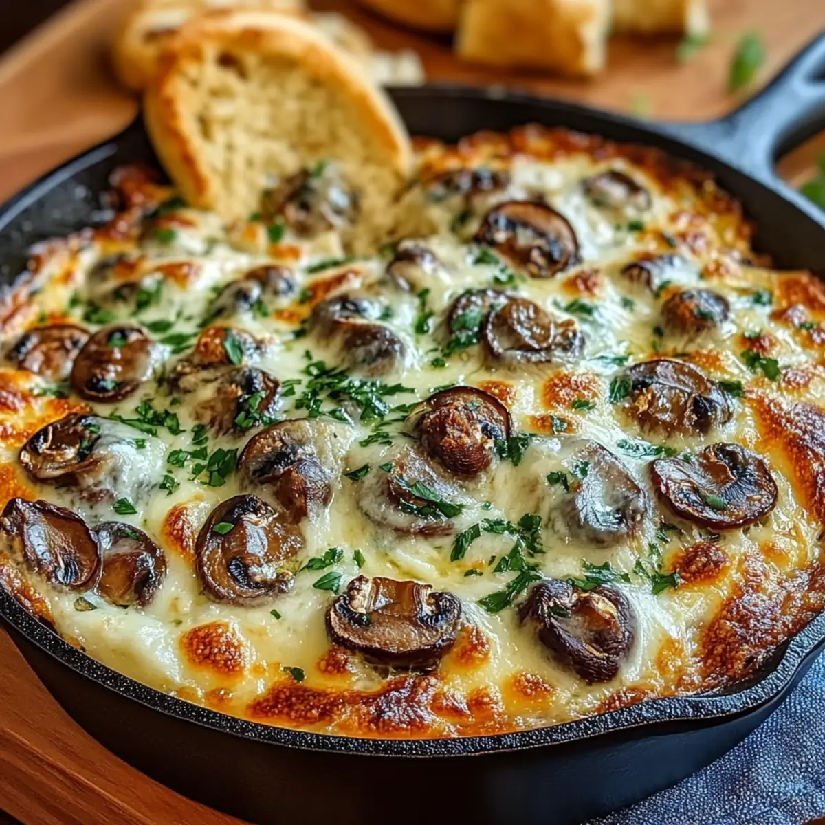 Remove the skillet from the oven, letting it cool for a minute. Garnish your Stuffed Mushroom Dip with fresh herbs like thyme or parsley for a pop of color and flavor. Serve it hot with your favorite dippers, and watch it disappear in no time!