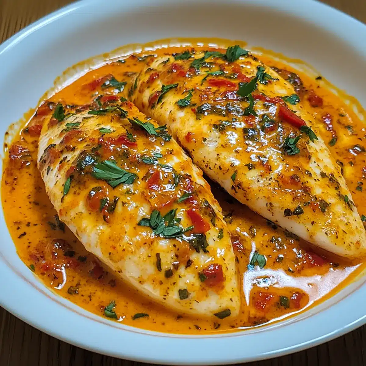Transfer the tilapia into serving dishes, ensuring each portion is generously topped with the roasted pepper sauce. For a bright finish, squeeze some fresh lemon juice over the top and garnish with chopped herbs like parsley or basil if desired. This will add not only a burst of flavor but also a delightful visual appeal to your delicious Tilapia in Roasted Pepper Sauce.