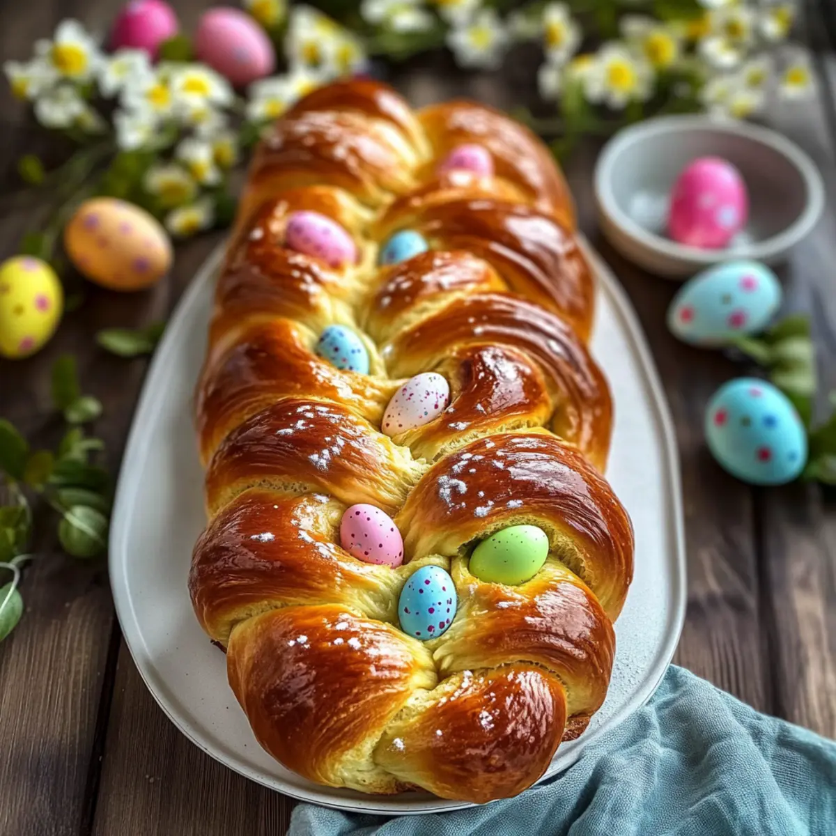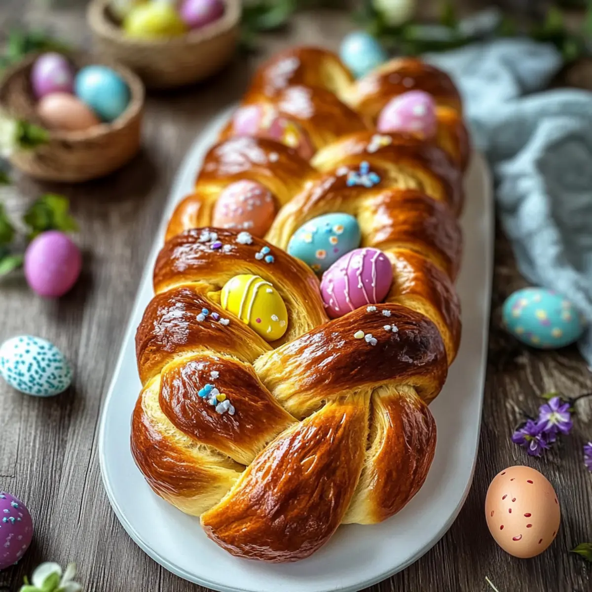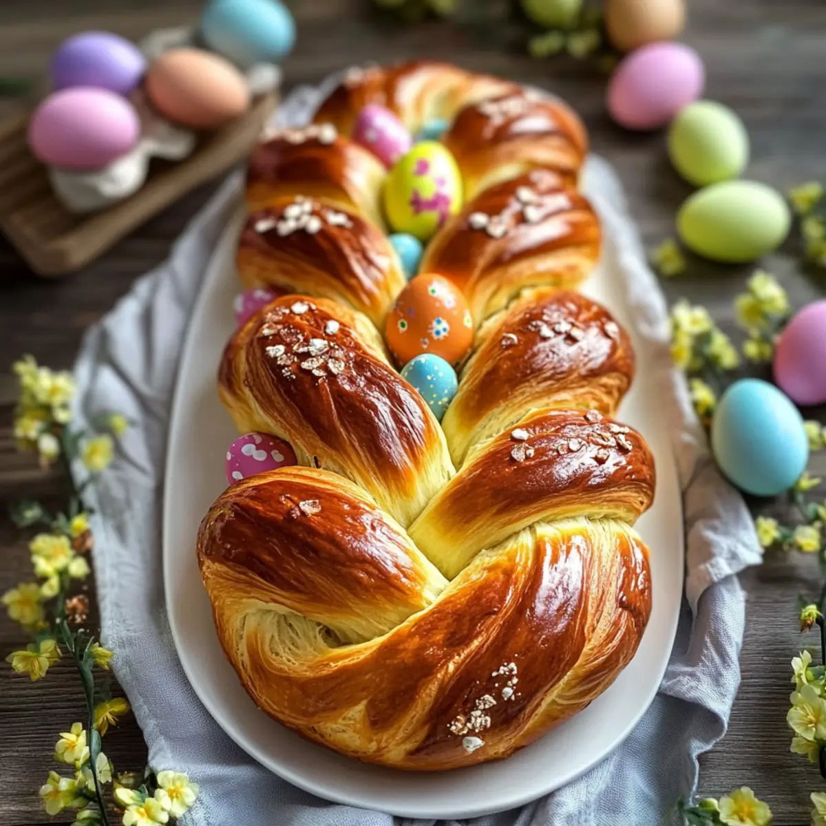 Visual Appeal: Its braided design and colorful dyed eggs make it a stunning centerpiece that everyone will admire.